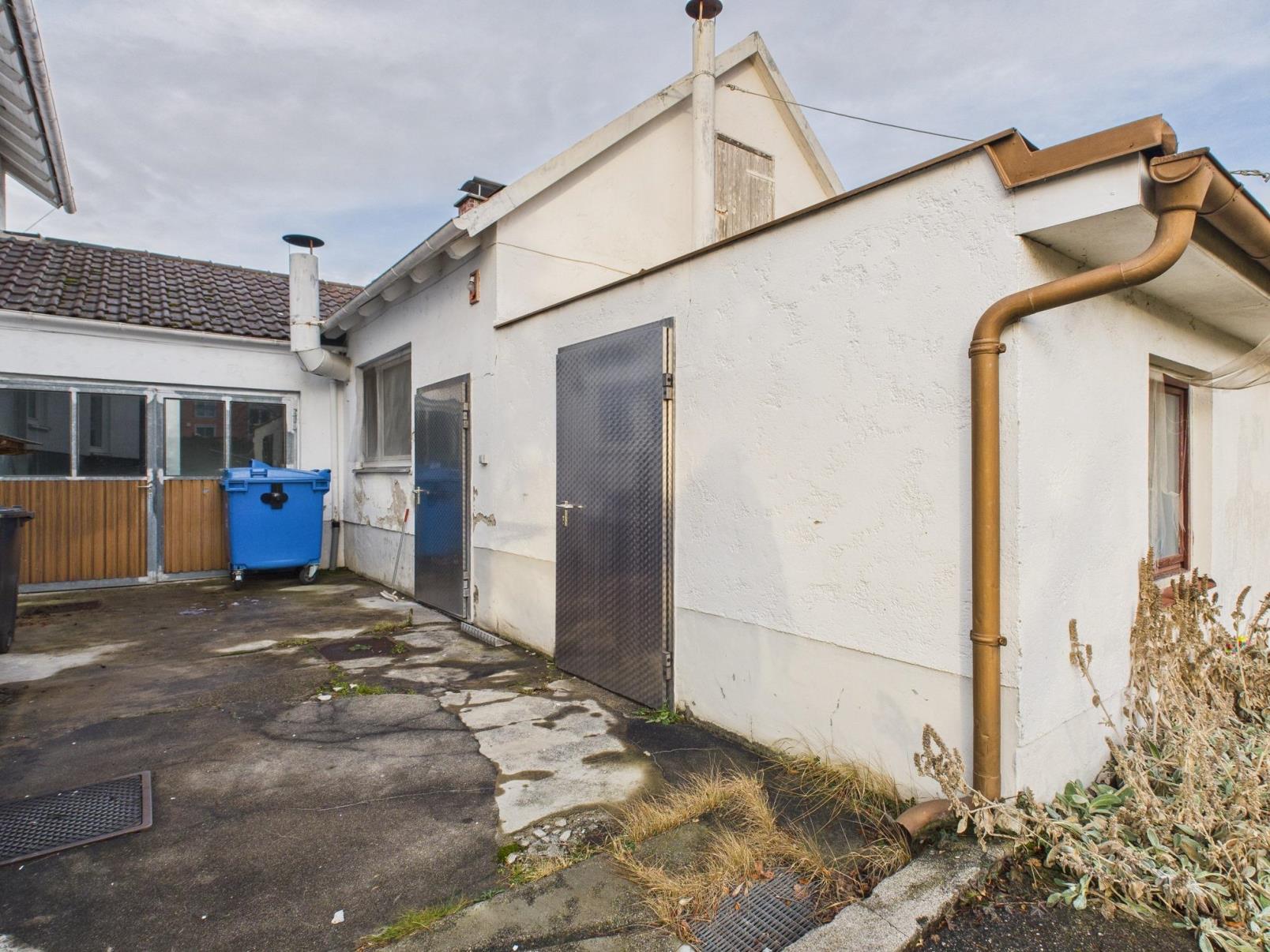 Auf dem Grundstück befindet sich noch ein Altbestand, bestehend aus zwei Wohnhäusern und einer Gewerbefläche mit Garagen.