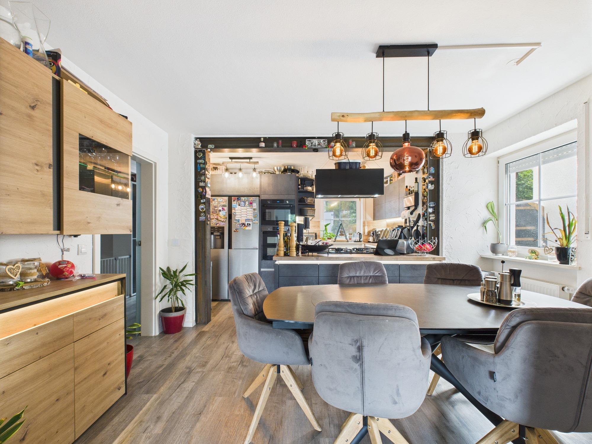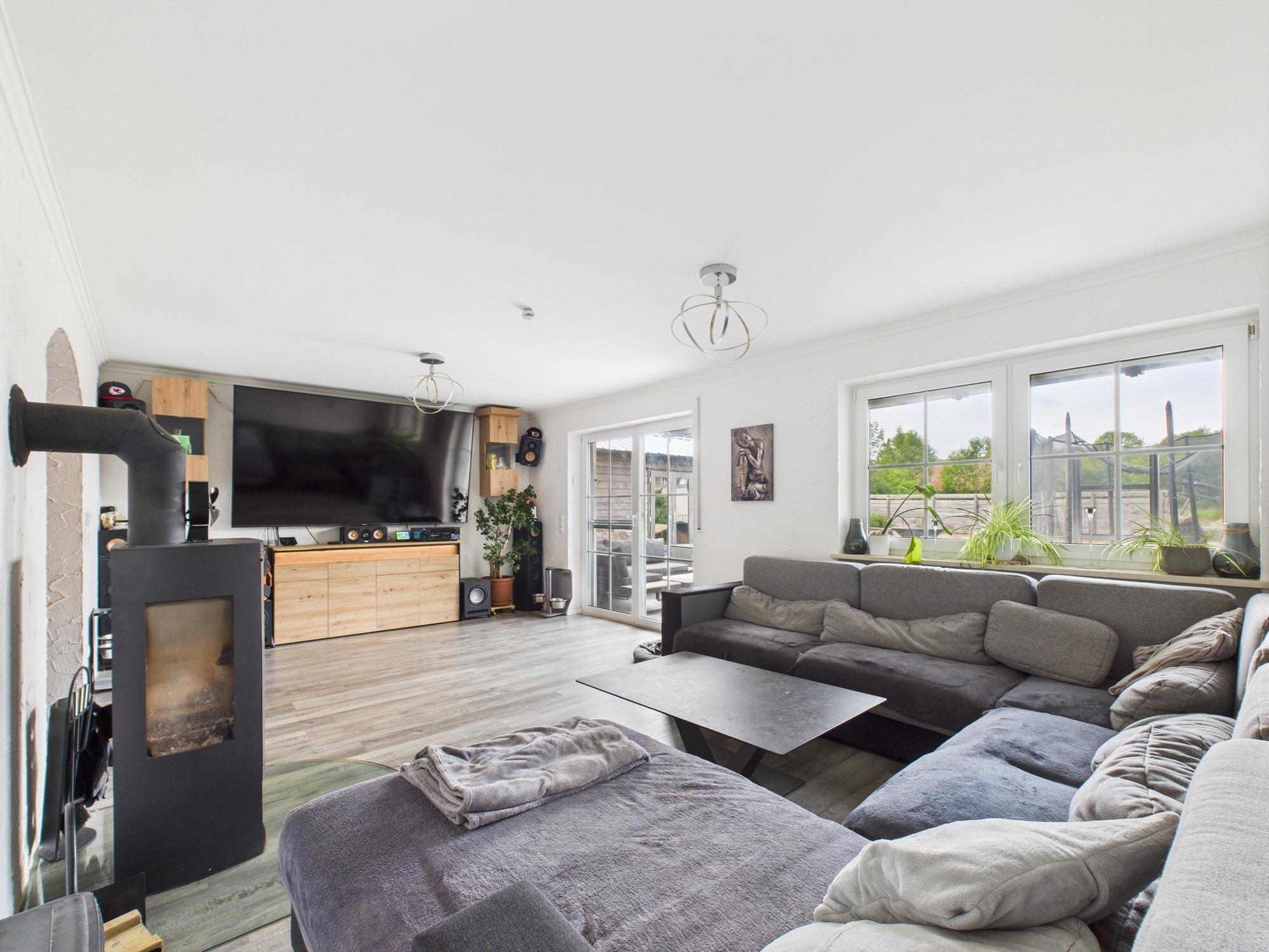 Im Erdgeschoss bildet der helle Wohn- und Essbereich mit Kaminofen das wohnliche Herzstück. Vom Wohnzimmer aus gelangen Sie direkt auf die Terrasse und in den Garten, der viel Platz für Spiel, Erholung und gemeinsame Zeit im Freien bietet. Vom Essbereich führt der Weg in die offen gestaltete Küche mit einer hochwertigen Einbauküche, die erst vor drei Jahren eingebaut wurde. Sie überzeugt durch modernes Design, hochwertige Geräte und viel Stauraum und ist ideal auf den Alltag mit Kindern abgestimmt.