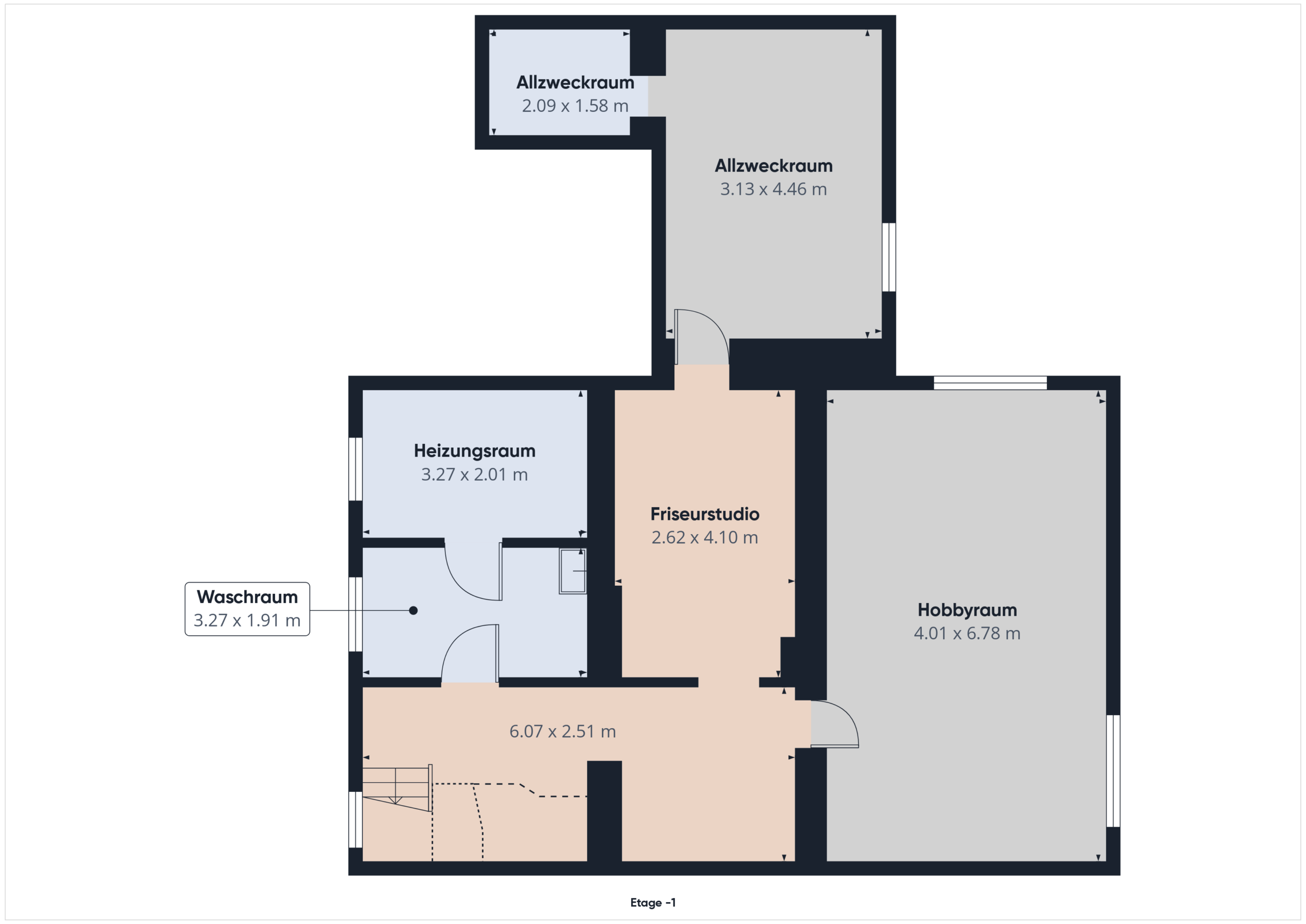Im Untergeschoss stehen neben Technik- und Lagerräumen ein großer Hobbyraum sowie ein vollständig ausgestattetes Friseur-Studio zur Verfügung, das sowohl privat als auch gewerblich genutzt werden kann. Diese zusätzliche Fläche eröffnet vielfältige Nutzungsmöglichkeiten, zum Beispiel für Beruf, Hobbys oder Gäste.