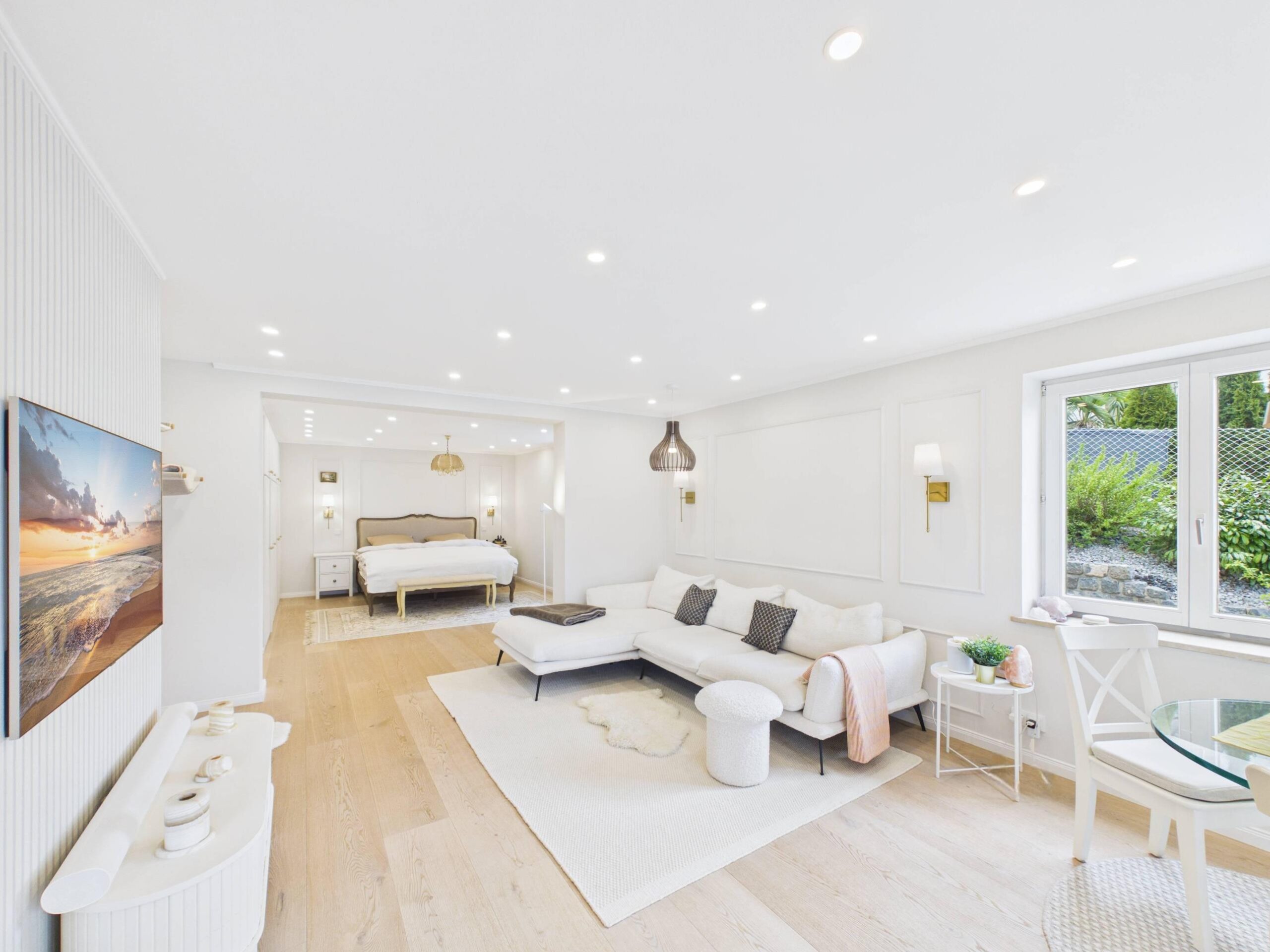 Die Immobilie wurde mit viel Feingefühl modernisiert, ohne ihren ursprünglichen Charme zu verlieren. Großzügige Raumstrukturen, helle Wohnbereiche und zahlreiche Außenflächen schaffen ein besonderes Wohnambiente mit vielseitigen Nutzungsmöglichkeiten.
