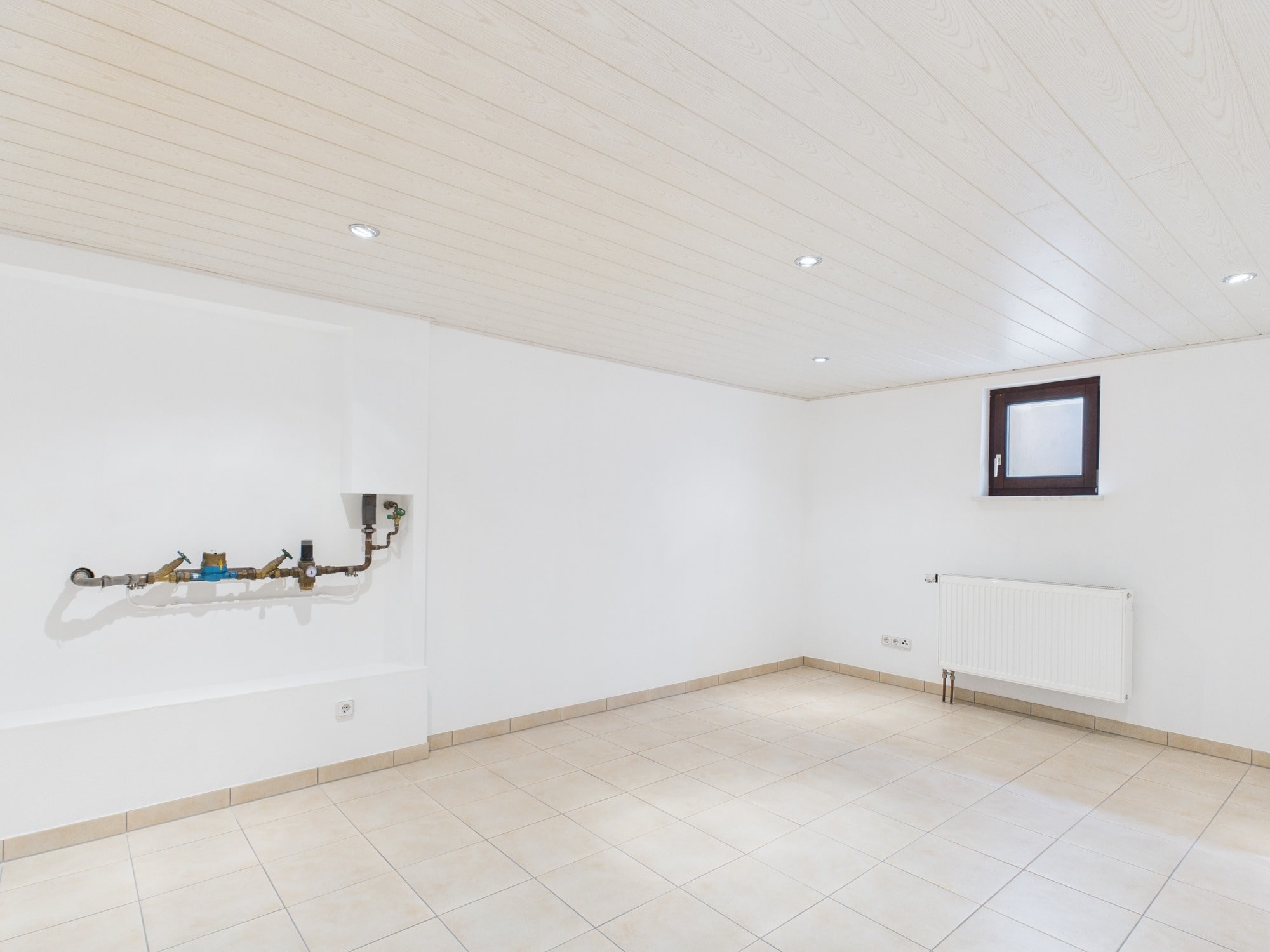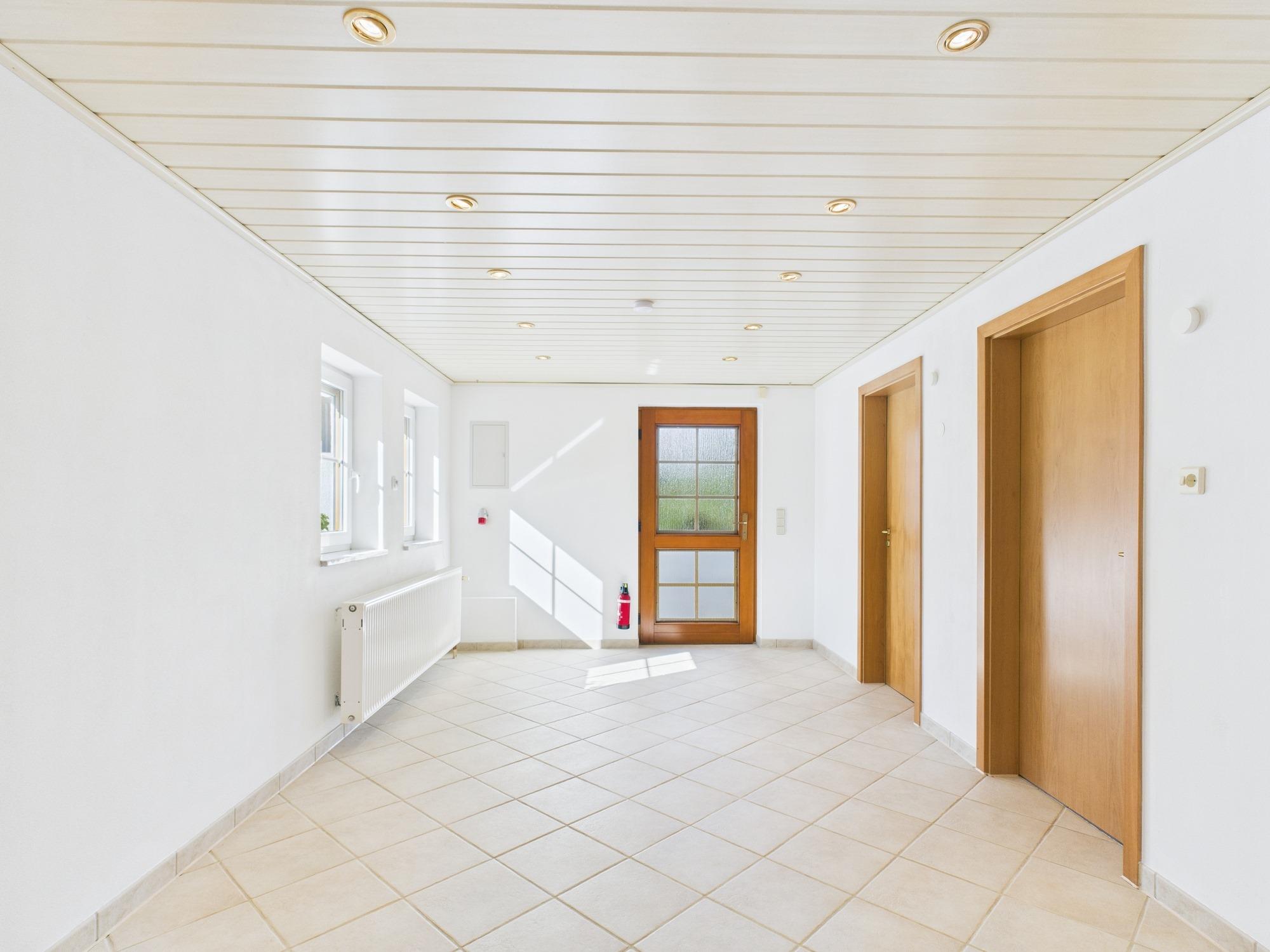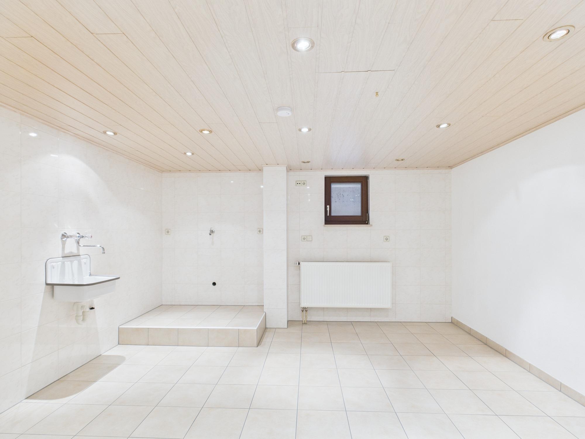 - Großzügiger, beheizbarer Raum mit Tageslicht; ausgestattet mit hellen Bodenfliesen, Decken-Spotlights und separatem Zugang. Ideal als Hobbyraum, Werkstatt oder Lagerfläche nutzbar
