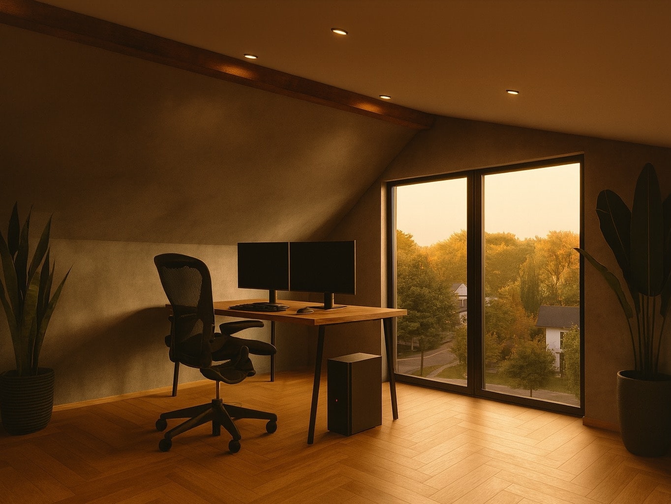 Ein Highlight ist der optionale Wintergarten mit voller Südausrichtung, der sich mit Rollos flexibel verschatten lässt und Ihr Wohnzimmer in eine sonnige Wohlfühloase verwandelt. Im auf Wunsch ausgebauten Dachgeschoss erwarten Sie zwei große Zimmer und ein Bad mit Gaube – hier genießen Sie bei klarer Sicht sogar ein eindrucksvolles Bergpanorama.