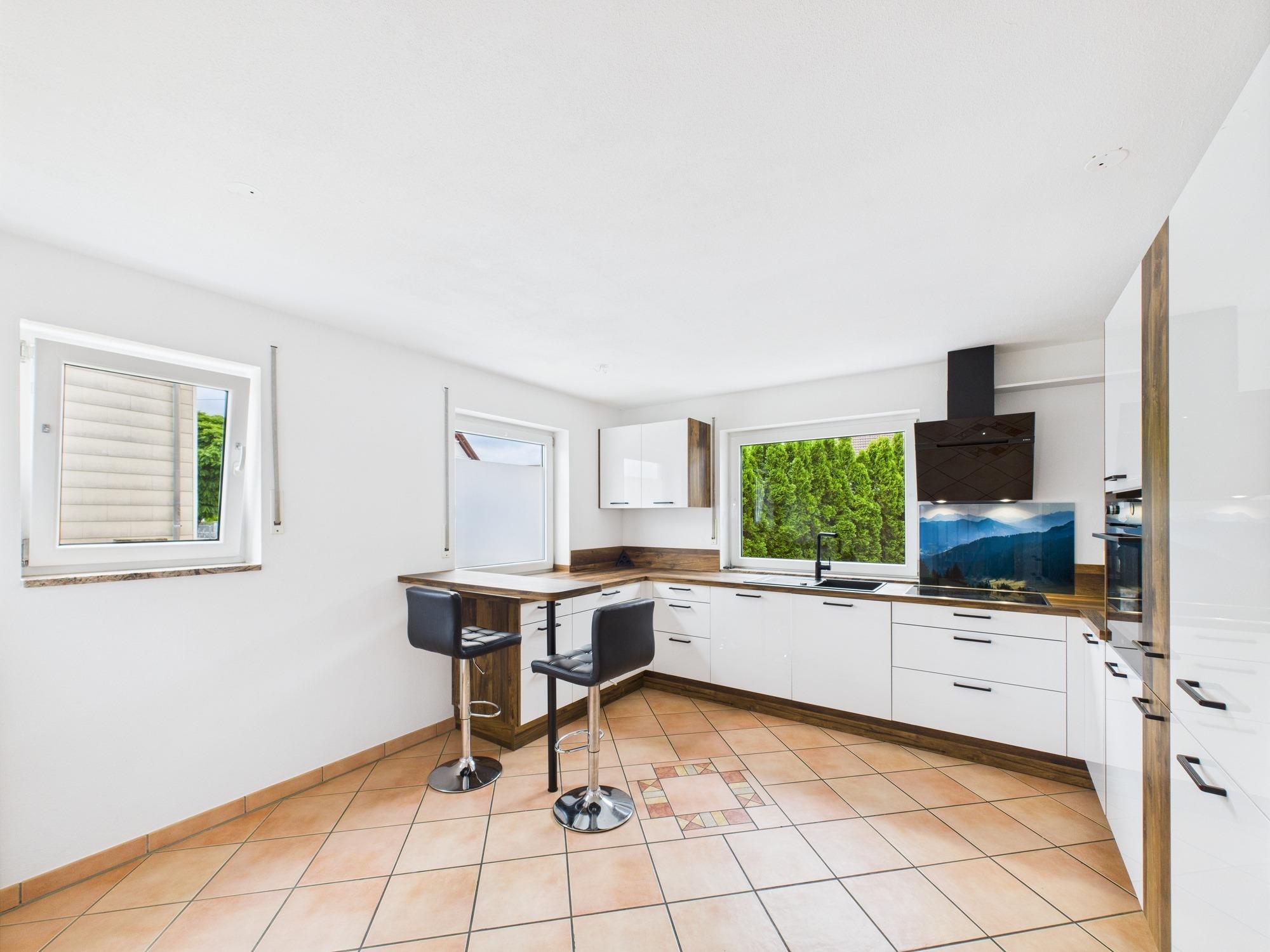 Erdgeschoss: Offene Wohnküche mit angrenzendem Wohnzimmer, Gäste-WC und einladende Diele. Die großzügige, helle Küche lädt zum gemeinsamen Kochen und Genießen ein – hier wird Kochen zum Vergnügen.