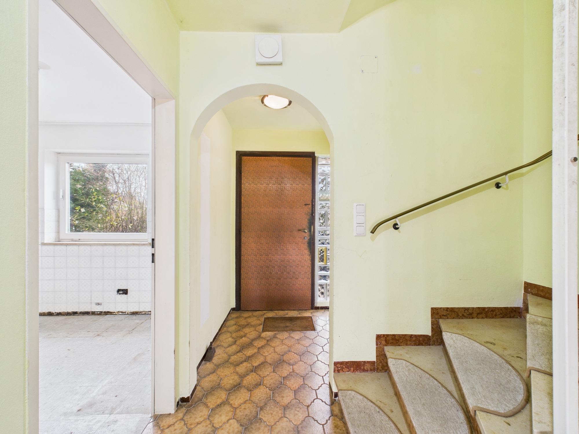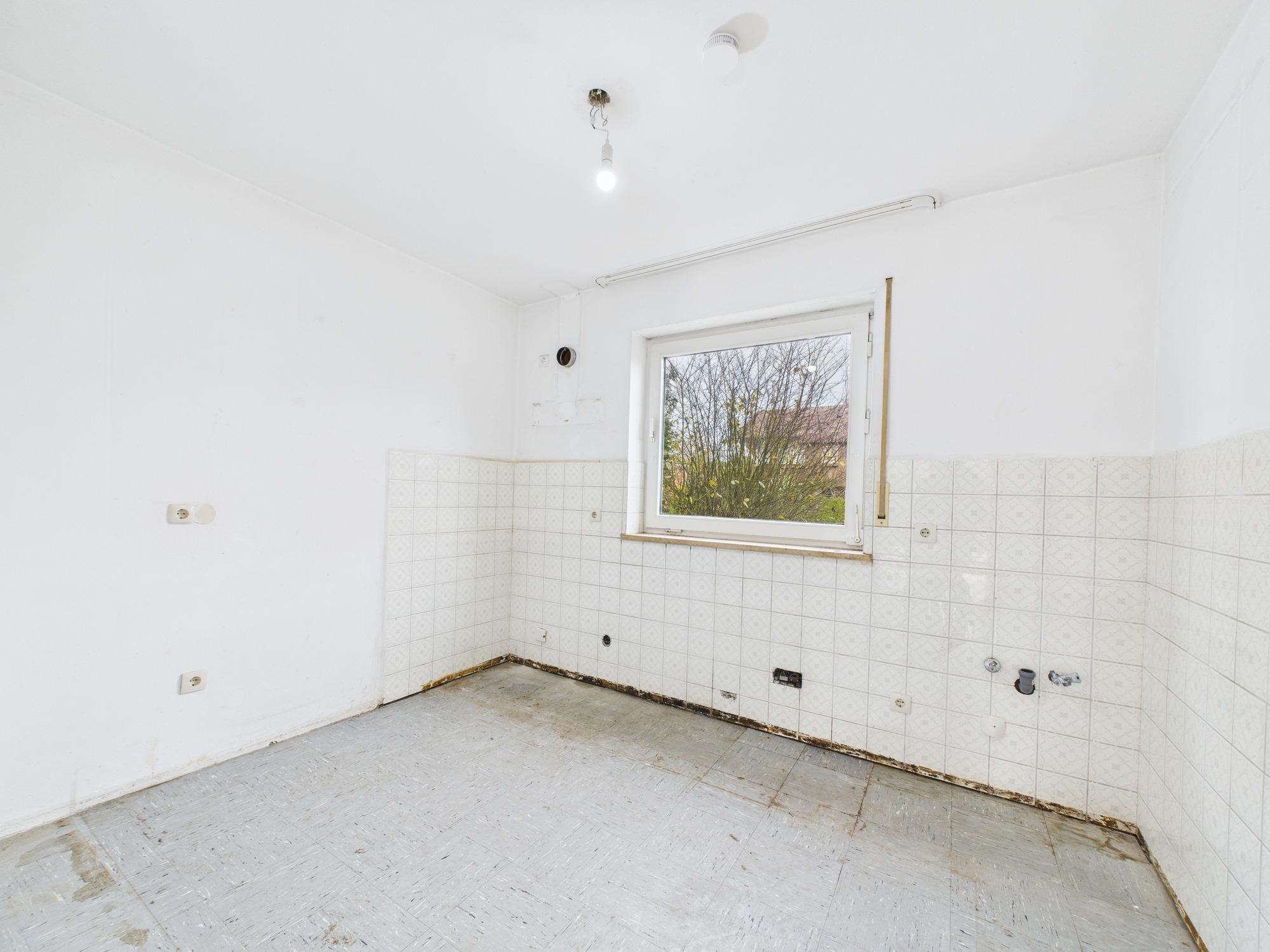 Das Haus befindet sich in einem sanierungsbedürftigen Zustand und eignet sich perfekt für Käufer, die ihre eigenen Ideen umsetzen möchten. Die Raumaufteilung ist klar strukturiert: Im Erdgeschoss führen Diele, Küche, Essbereich und Wohnzimmer direkt zur Terrasse und in den länglichen Garten mit Gartenhäuschen.