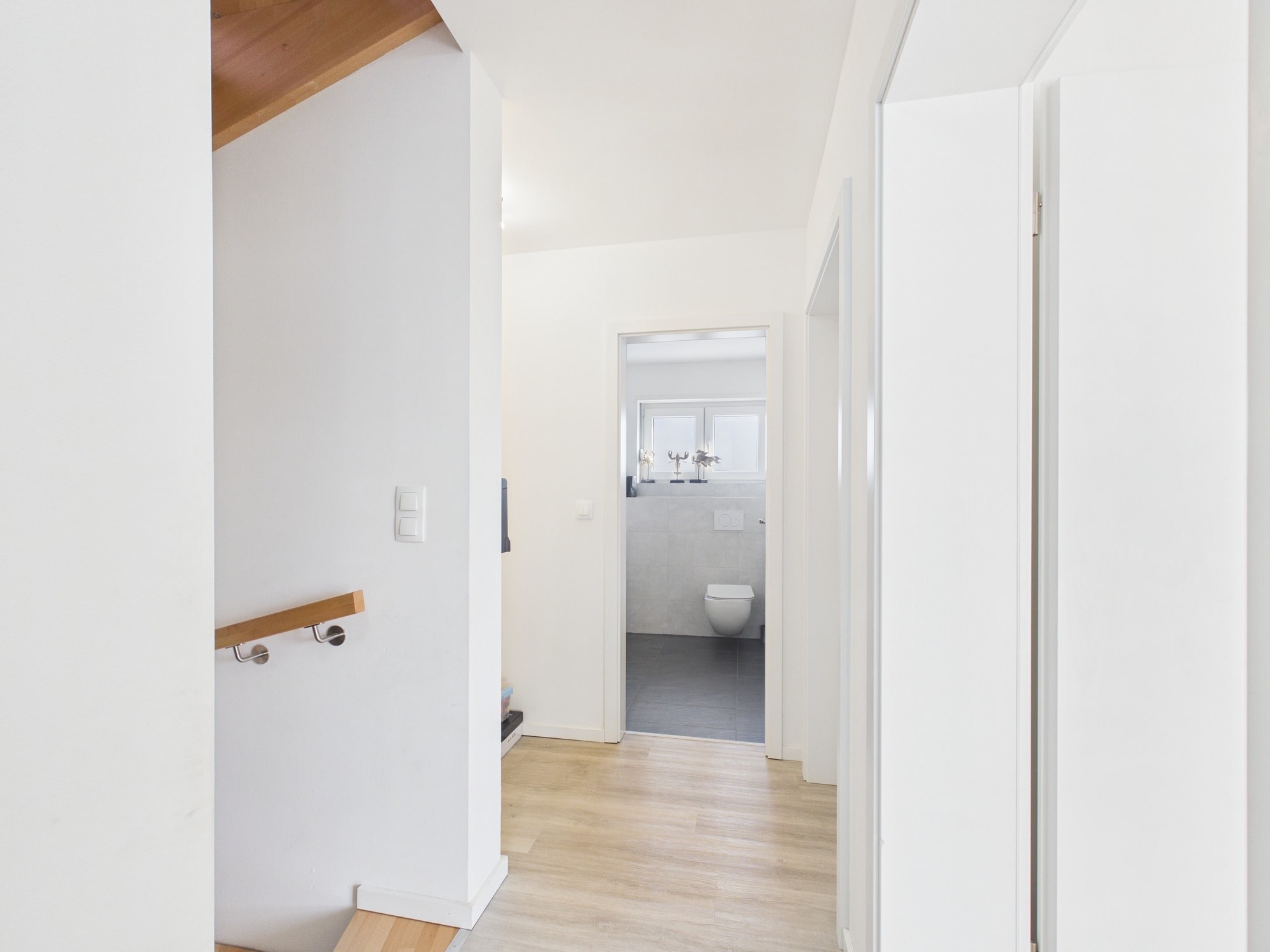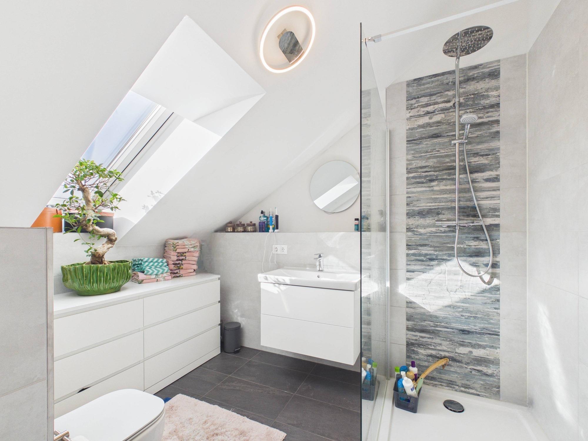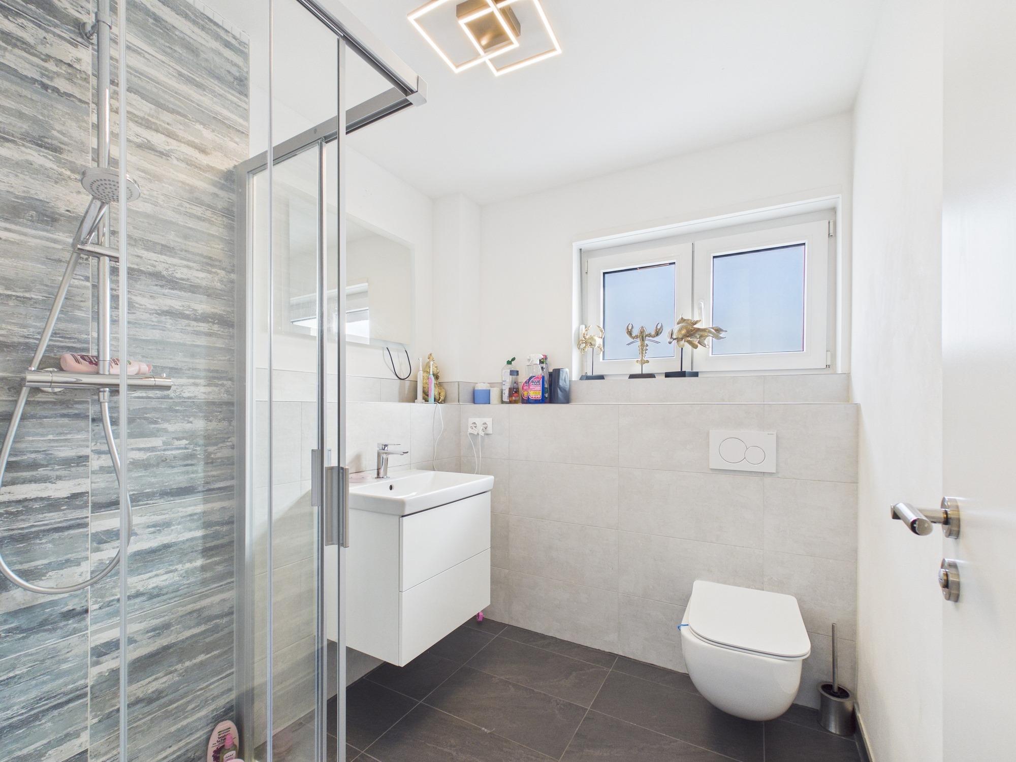 - Tageslichtbad im Obergeschoss mit Dusche, Waschbecken und WC