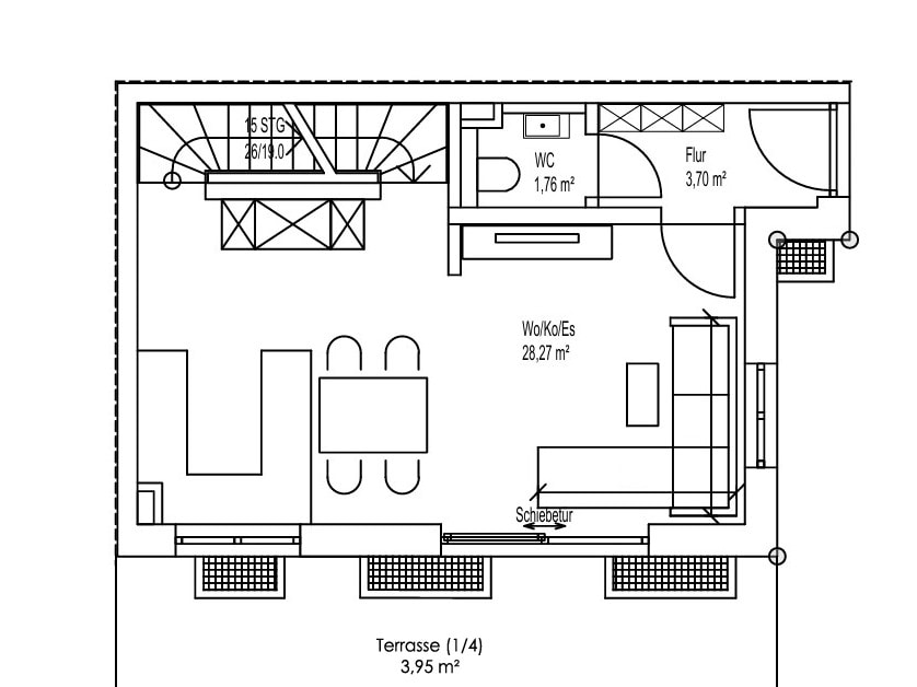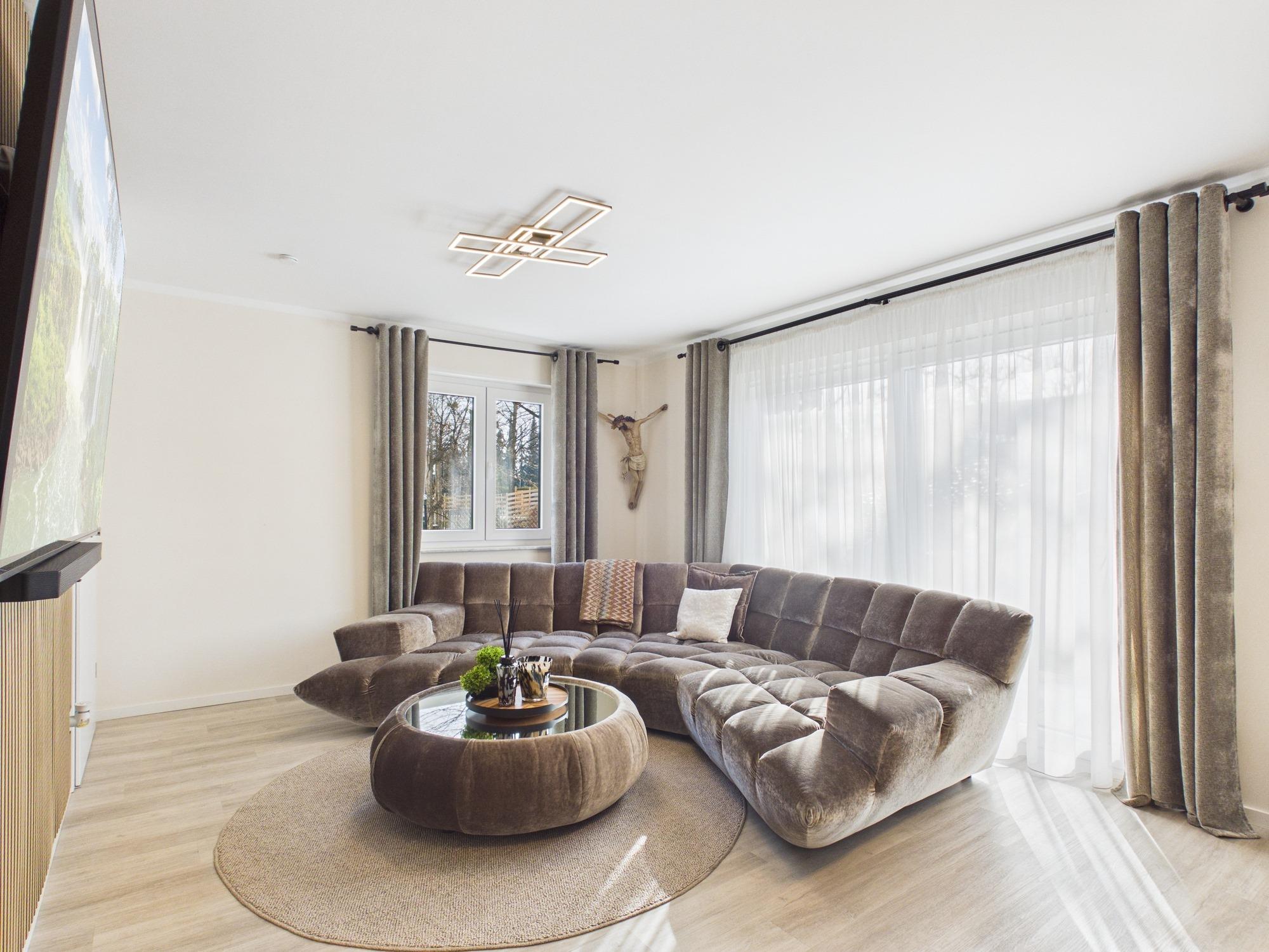 - Lichtdurchfluteter Wohn-, Ess- und Kochbereich mit direktem Zugang in den Garten