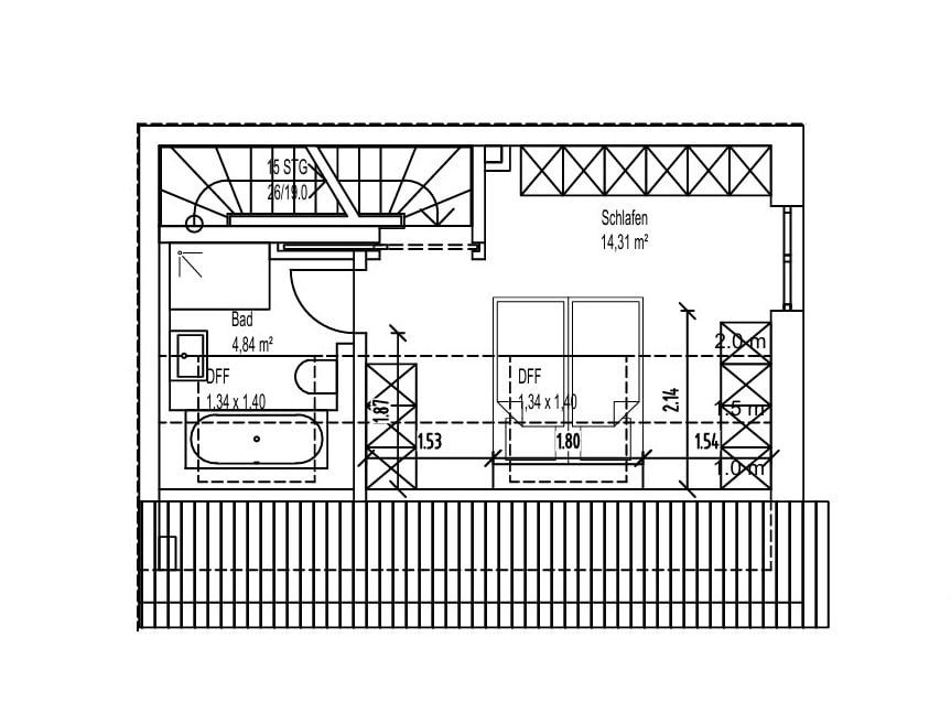 - Hauptschlafzimmer im Dachgeschoss mit eigenem Duschbad