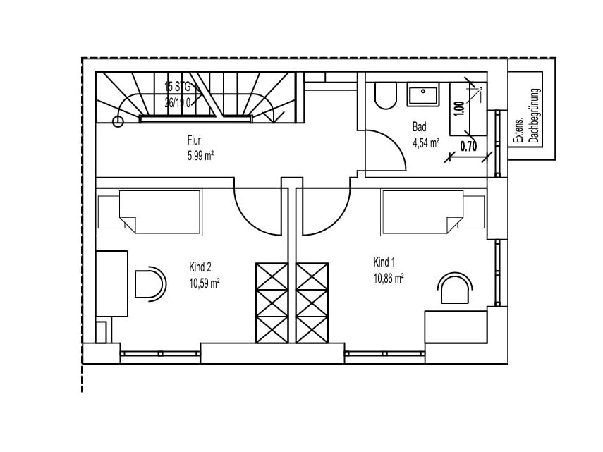 - Zwei mögliche Kinderzimmer im Obergeschoss
