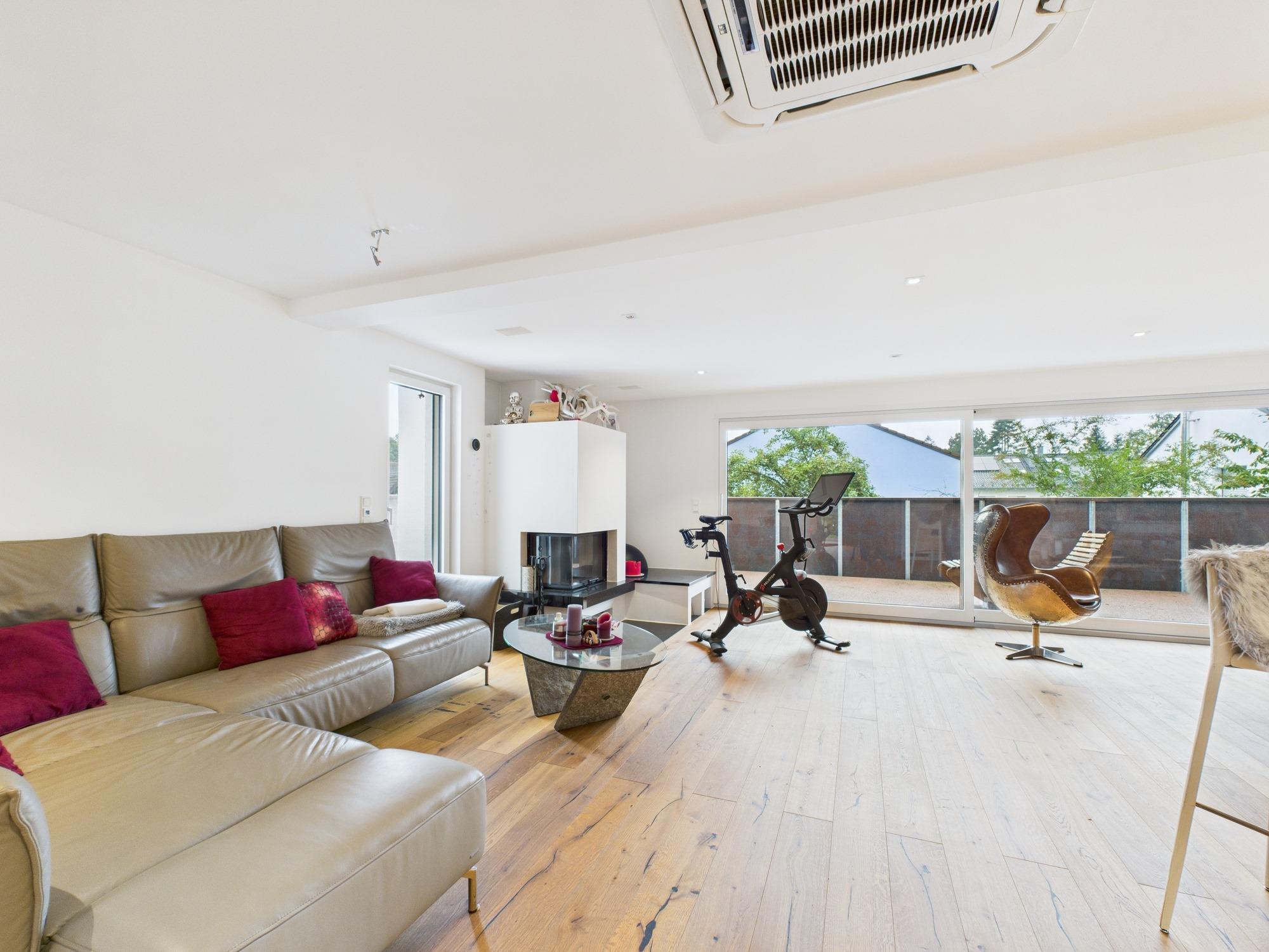 Ergänzt wird das Obergeschoss durch ein Schlafzimmer sowie ein Büro- bzw. Gästezimmer. Selbst an heißen Sommertagen bleibt das OG dank der eingebauten REMKO-Klimaanlage angenehm kühl.
