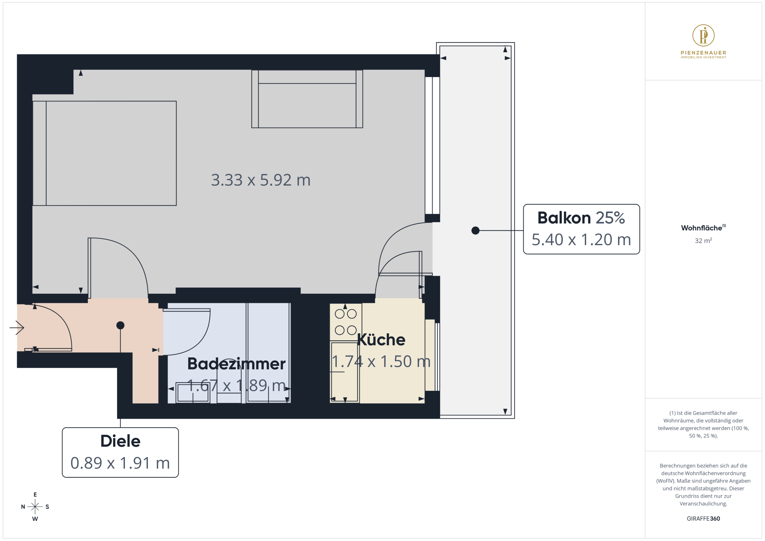 - ca. 32 m² Wohnfläche / Nutzfläche ca. 36 m²