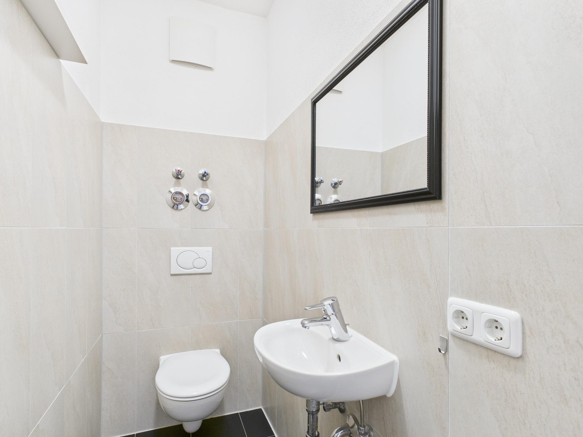Über eine innenliegende Treppe erreichen Sie das wohnlich ausgebaute Souterrain. Dort befindet sich der gemütliche Schlafbereich mit Doppelbett und Kleiderschrank, der optisch vom großzügigen Badezimmer getrennt ist. Das Badezimmer ist modern gefliest und mit Badewanne samt Glasabtrennung, Waschbecken und WC ausgestattet. Auch vom Souterrain besteht ein direkter Zugang zum Gartenbereich, der zusätzlichen Rückzugsraum im Freien bietet.