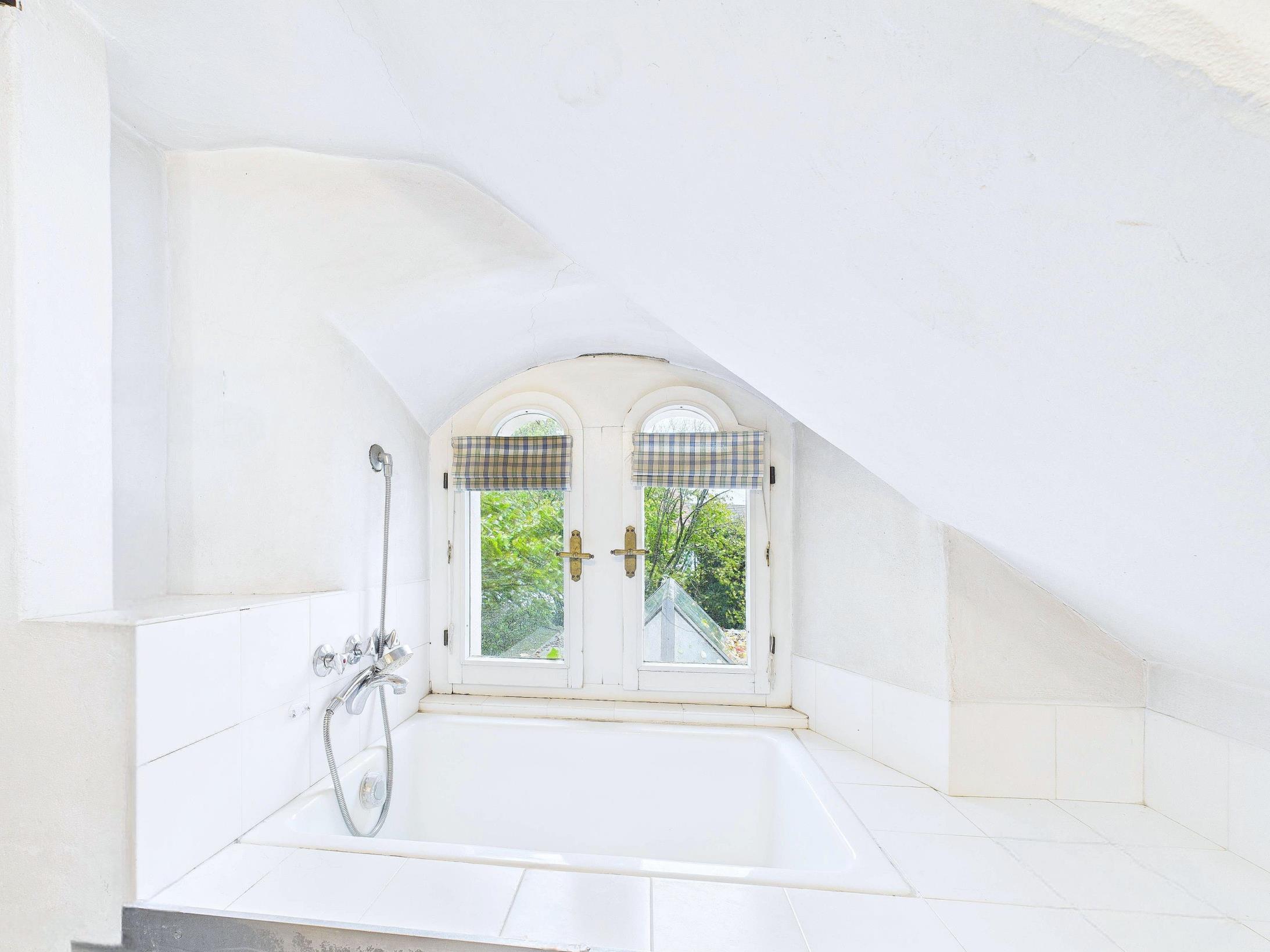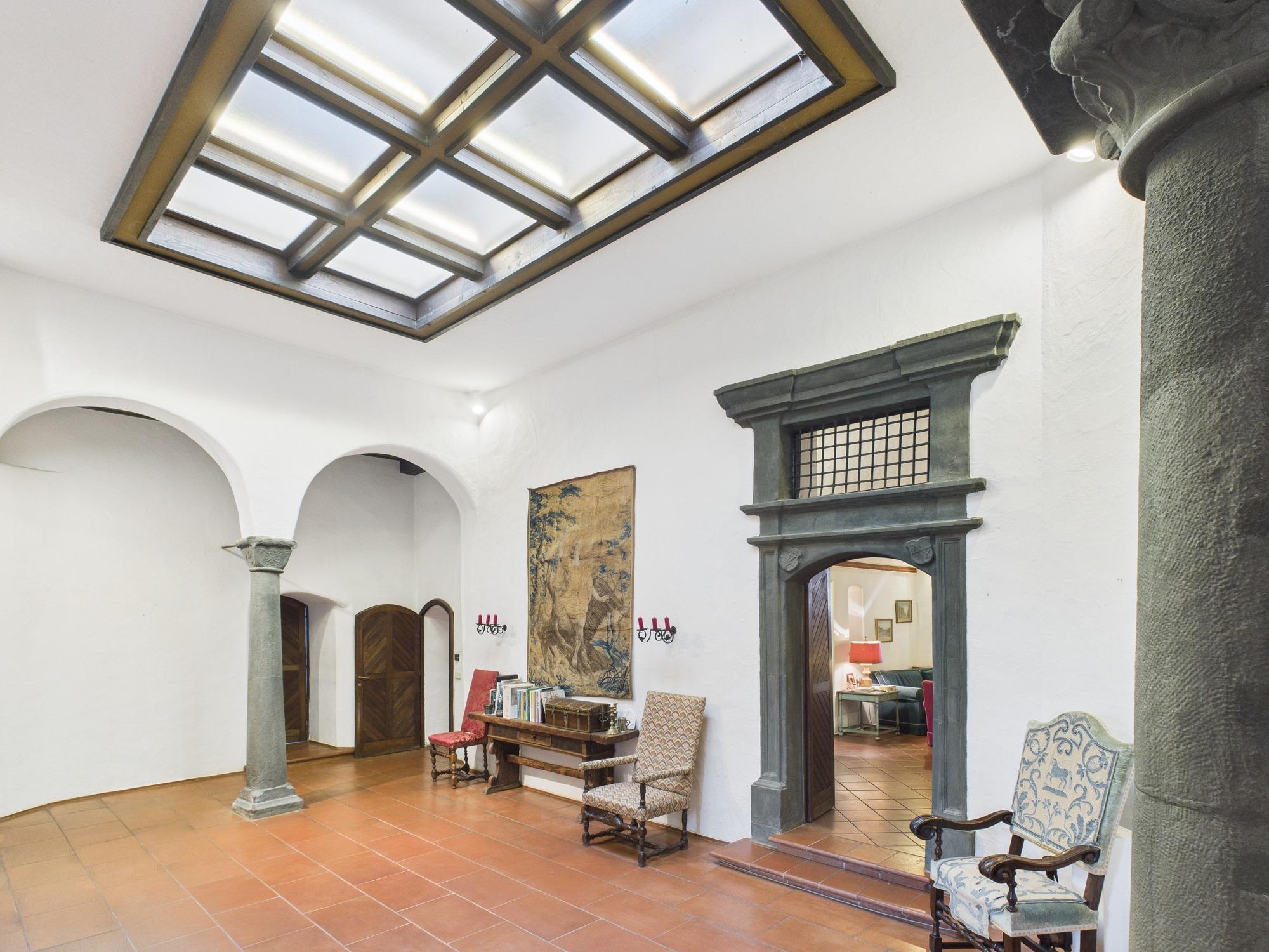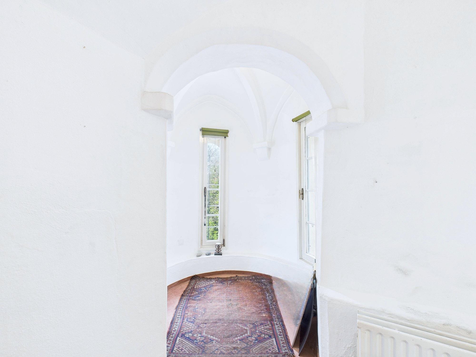 Über die hohen Fenster fällt das Licht auf jahrhundertealte Mauern, die über zwei Meter stark sind und für neue Raumkonzepte zum Teil durchbrochen wurden. Ein zusätzliches Arbeitszimmer mit separatem Zugang bietet sich perfekt als Atelier, Praxis oder Rückzugsort an.