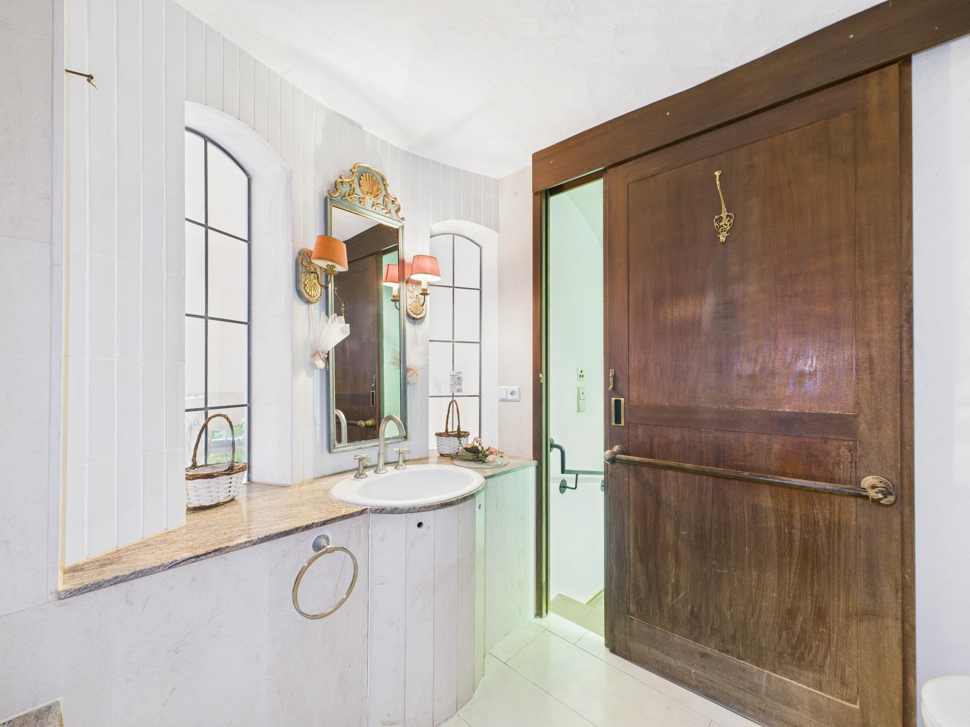 Sie verfügt über fünf Schlafzimmer, fünf Bäder, sechs prächtige Erker und eine repräsentative Eingangshalle, getragen von imposanten Marmorsäulen.