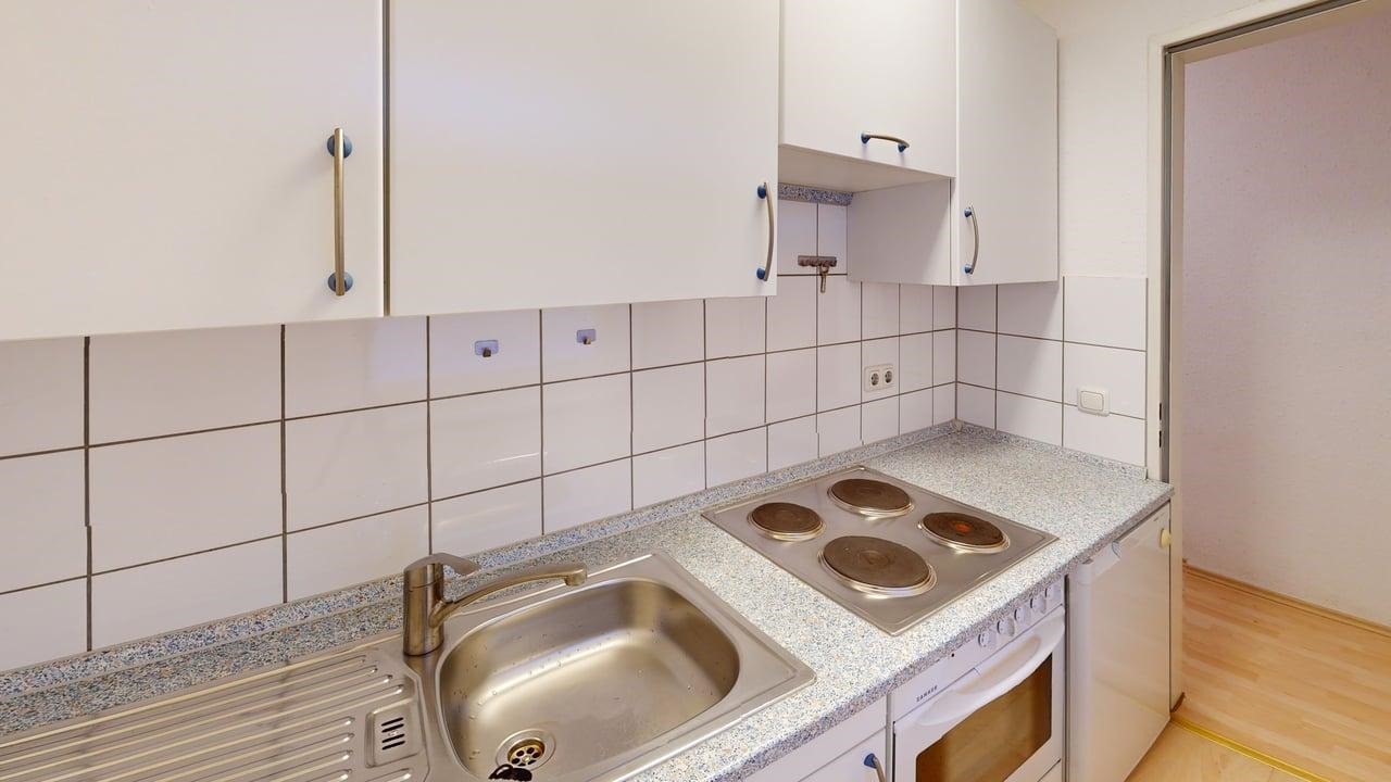 Im Kaufpreis enthalten sind sowohl die vorhandene Küchenzeile als auch der überdachte Stellplatz in der Sammelgarage. Der Wertanteil dieser beiden Ausstattungsmerkmale beträgt ca. 20.000 Euro und ist bereits im Kaufpreis berücksichtigt – es entstehen hierfür keine zusätzlichen Kosten.