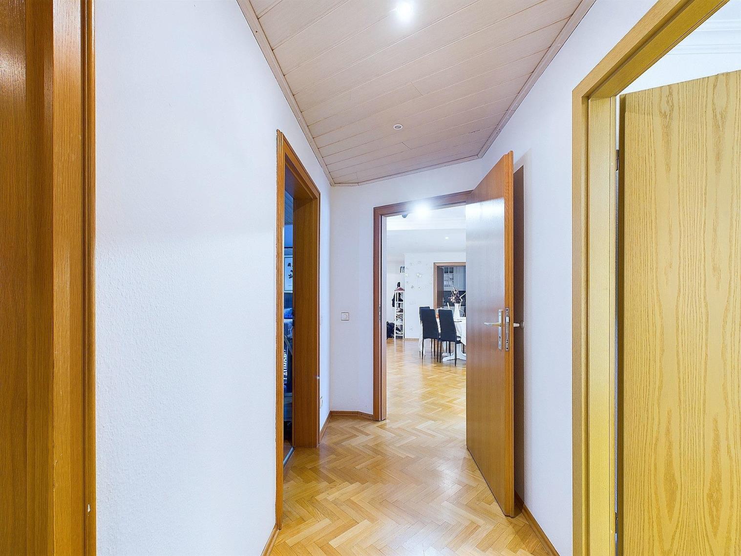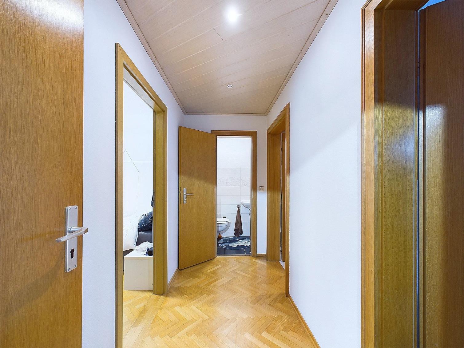 + Eichenholzparkett in Fischgrätverlegung im Gang