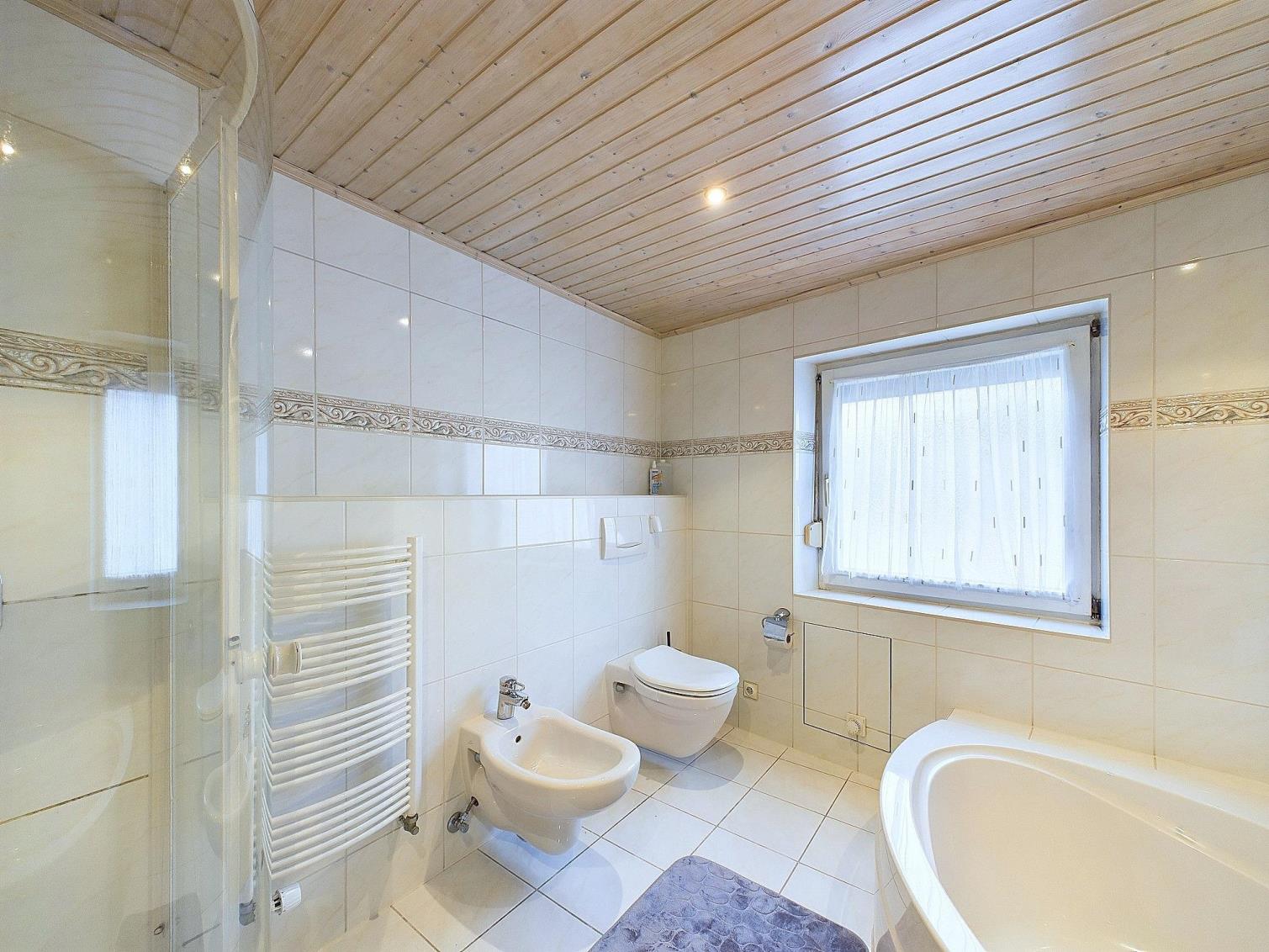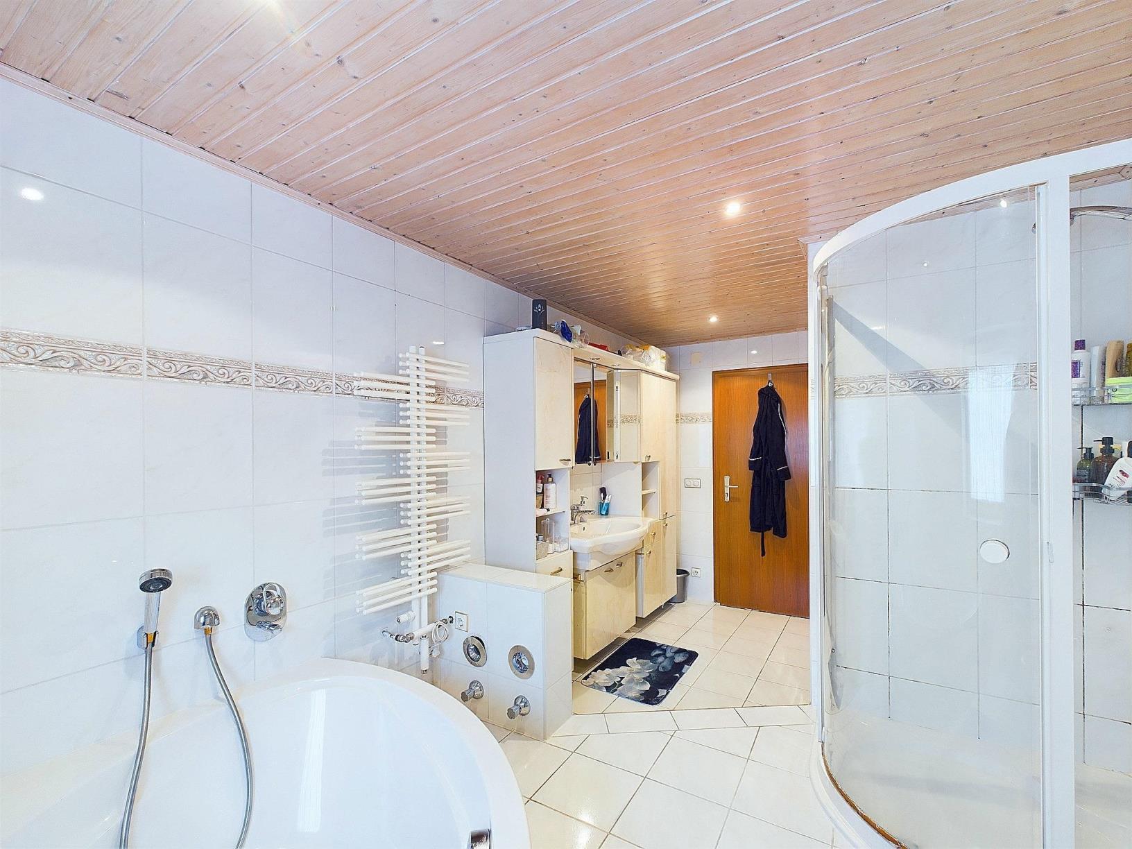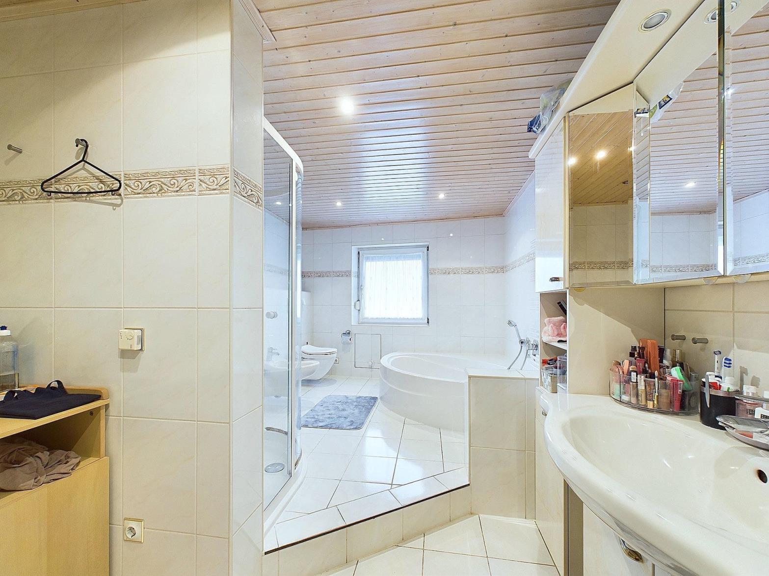 + ca. 12m² großes Tageslichtbad mit Eckbadewanne, Dusche, Waschbecken, WC, Bidet,