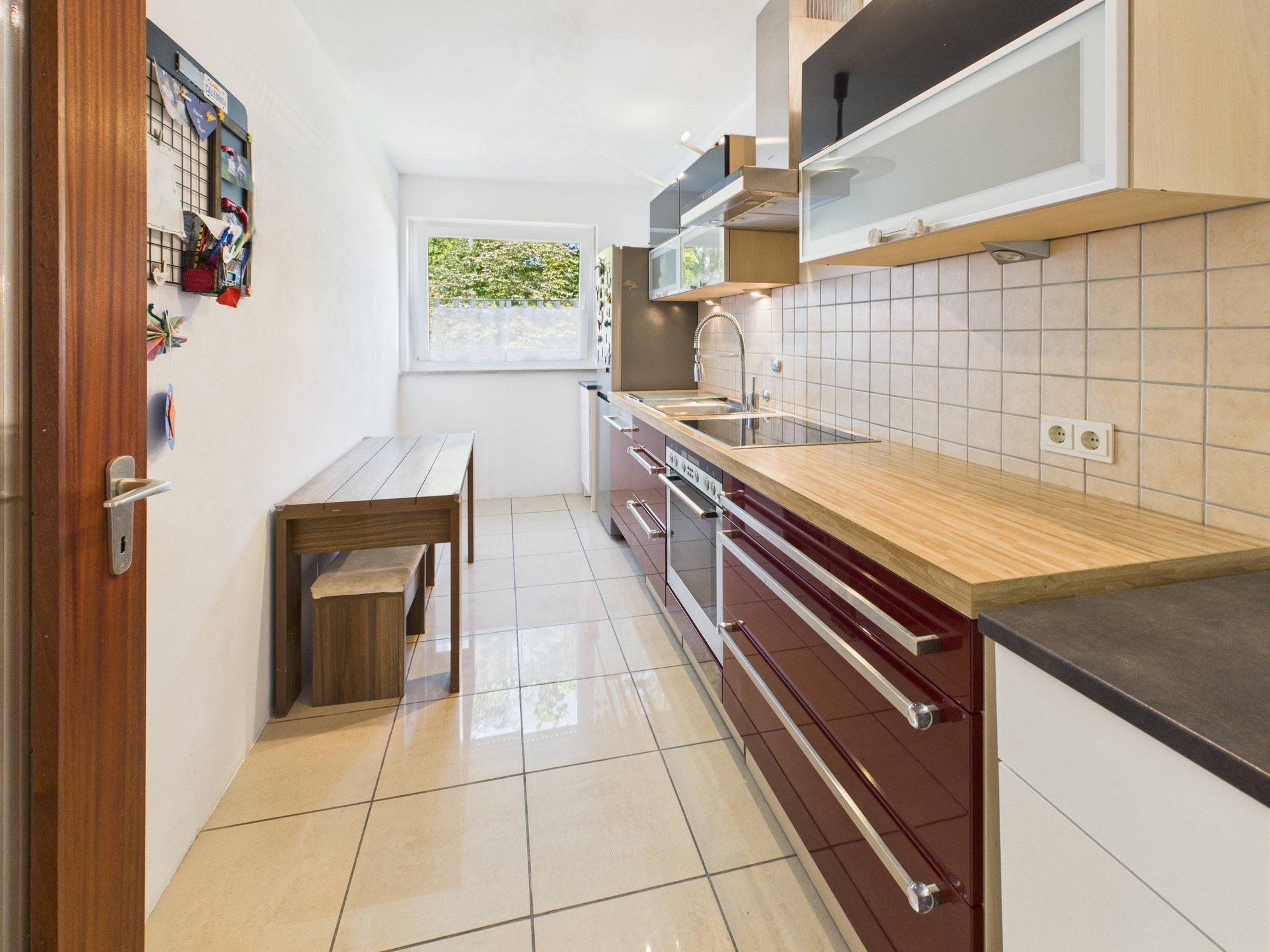 Rechts vom Flur liegt die voll ausgestattete Einbauküche, welche mit hochwertigen Geräten ausgestattet ist.