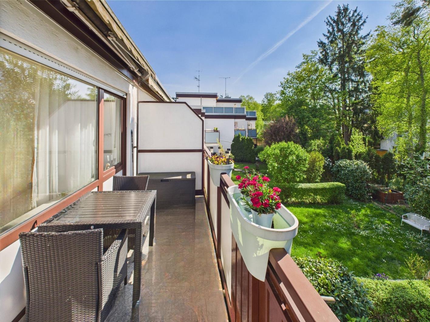 - sichtgeschützter Balkon mit Blick ins Grüne und Markise