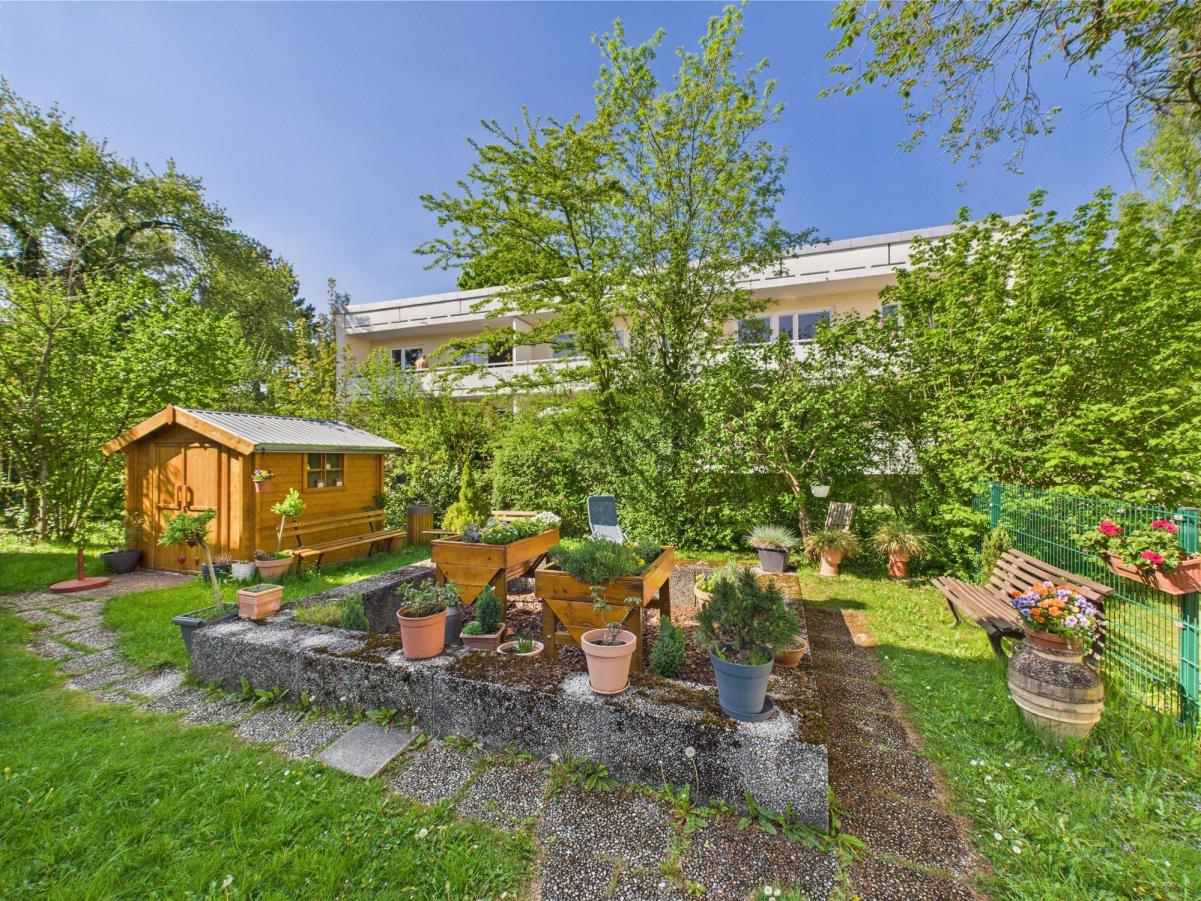 Besonders hervorzuheben ist der dazugehörige Gemeinschaftsgarten, der von den Bewohnern liebevoll gepflegt und von einem Gärtnerhäuschen ergänzt wird.