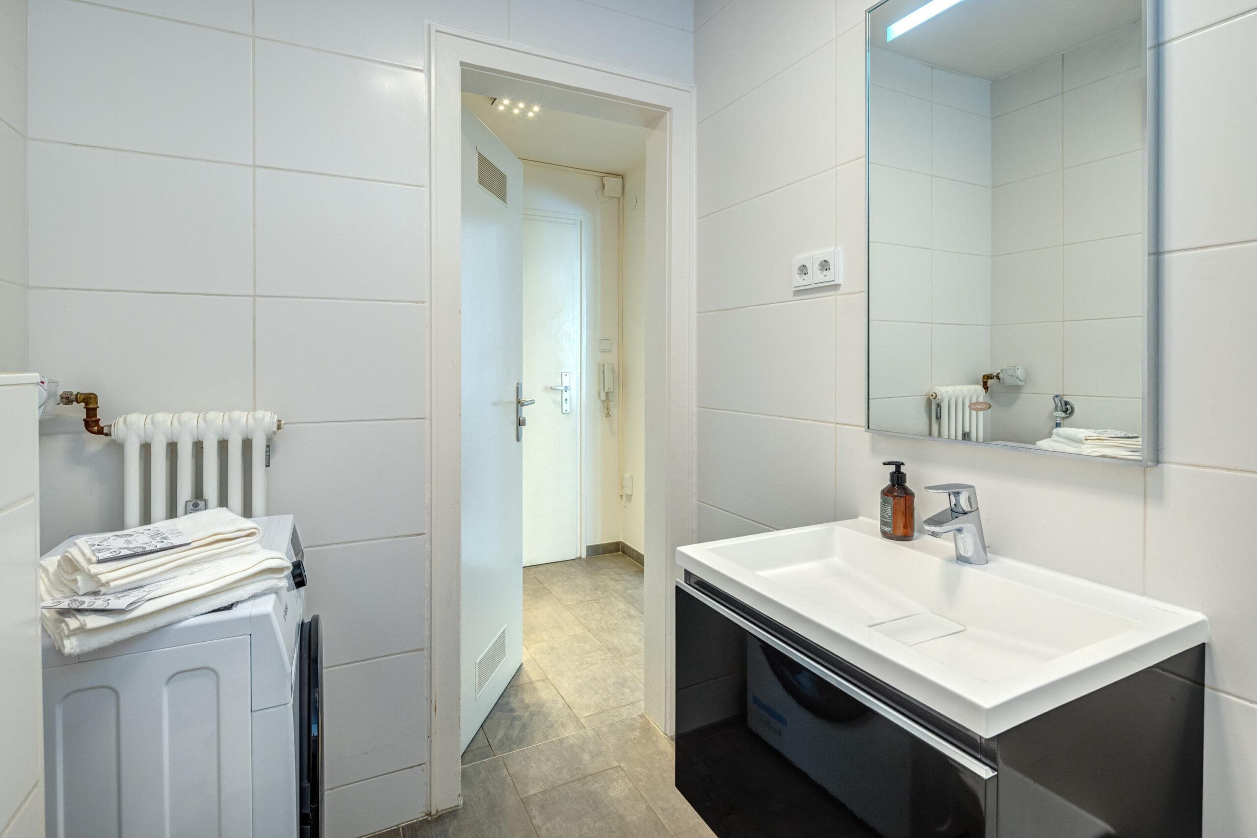 Das modernisierte Badezimmer ist mit Badewanne, WC, Waschbecken, Unterschrank und einer Waschmaschine ausgestattet. Ein praktischer Einbauschrank im separat abgegrenzten Eingangsbereich sorgt für zusätzlichen Stauraum. Zusätzlich gehört zur Wohnung ein praktisches Kellerabteil, das weitere Abstellmöglichkeiten bietet.