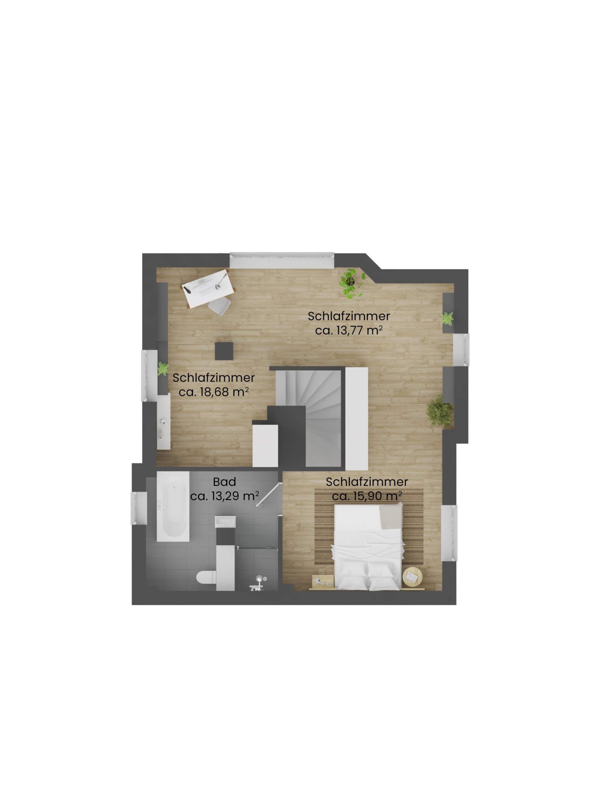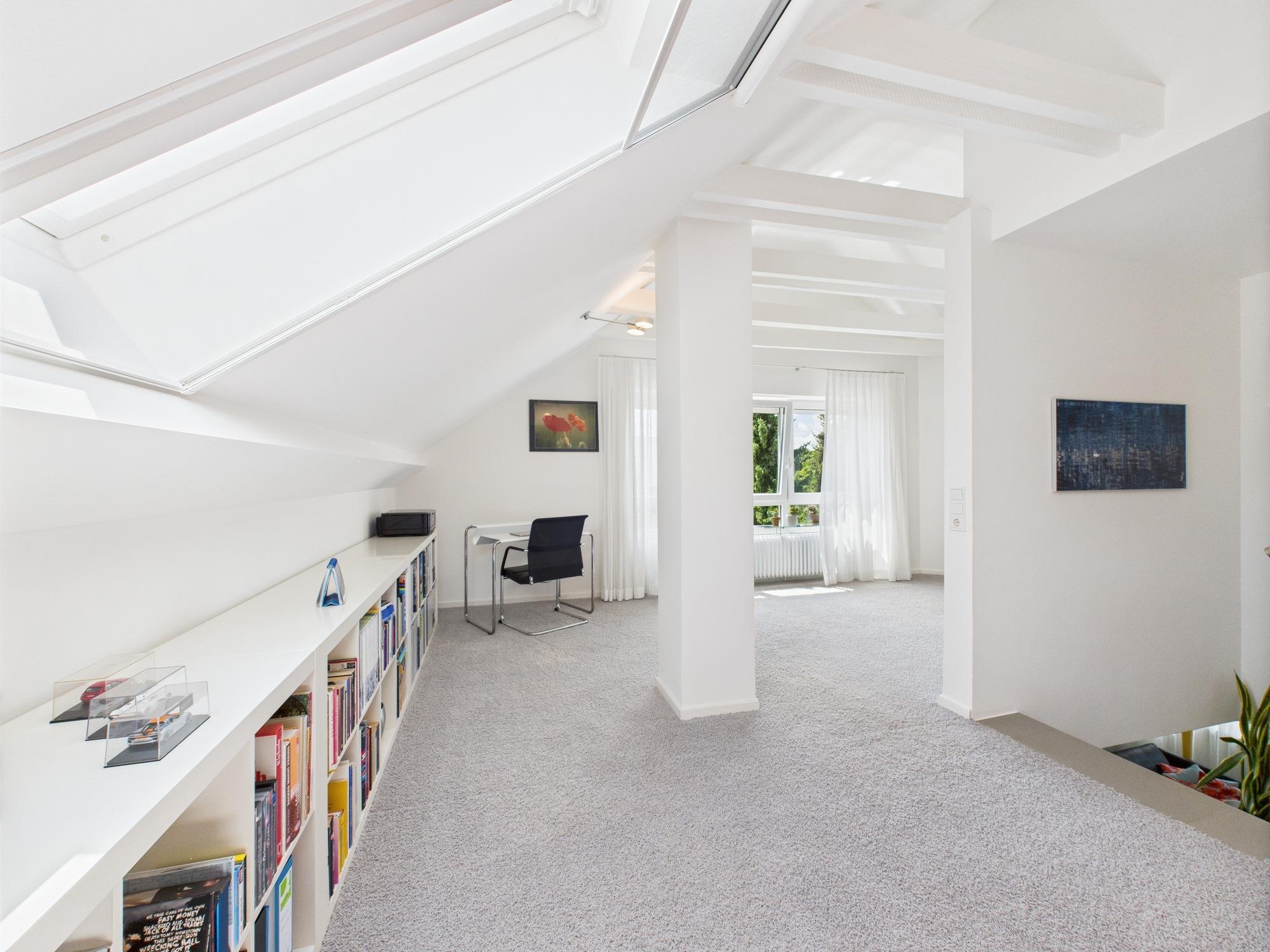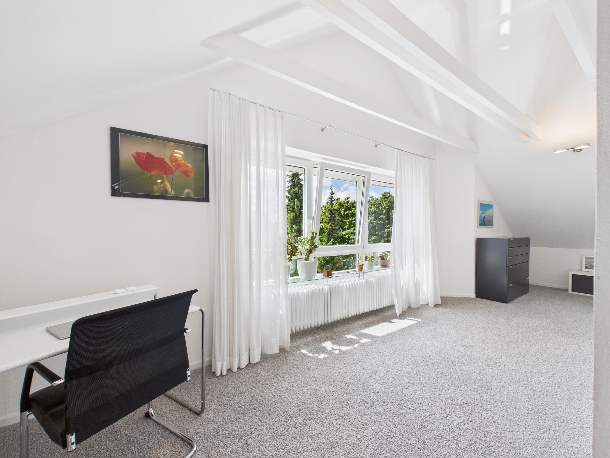 - Schlafzimmer mit bis zu 3 m Deckenhöhe und Arbeitsbereich im Dachgeschoss