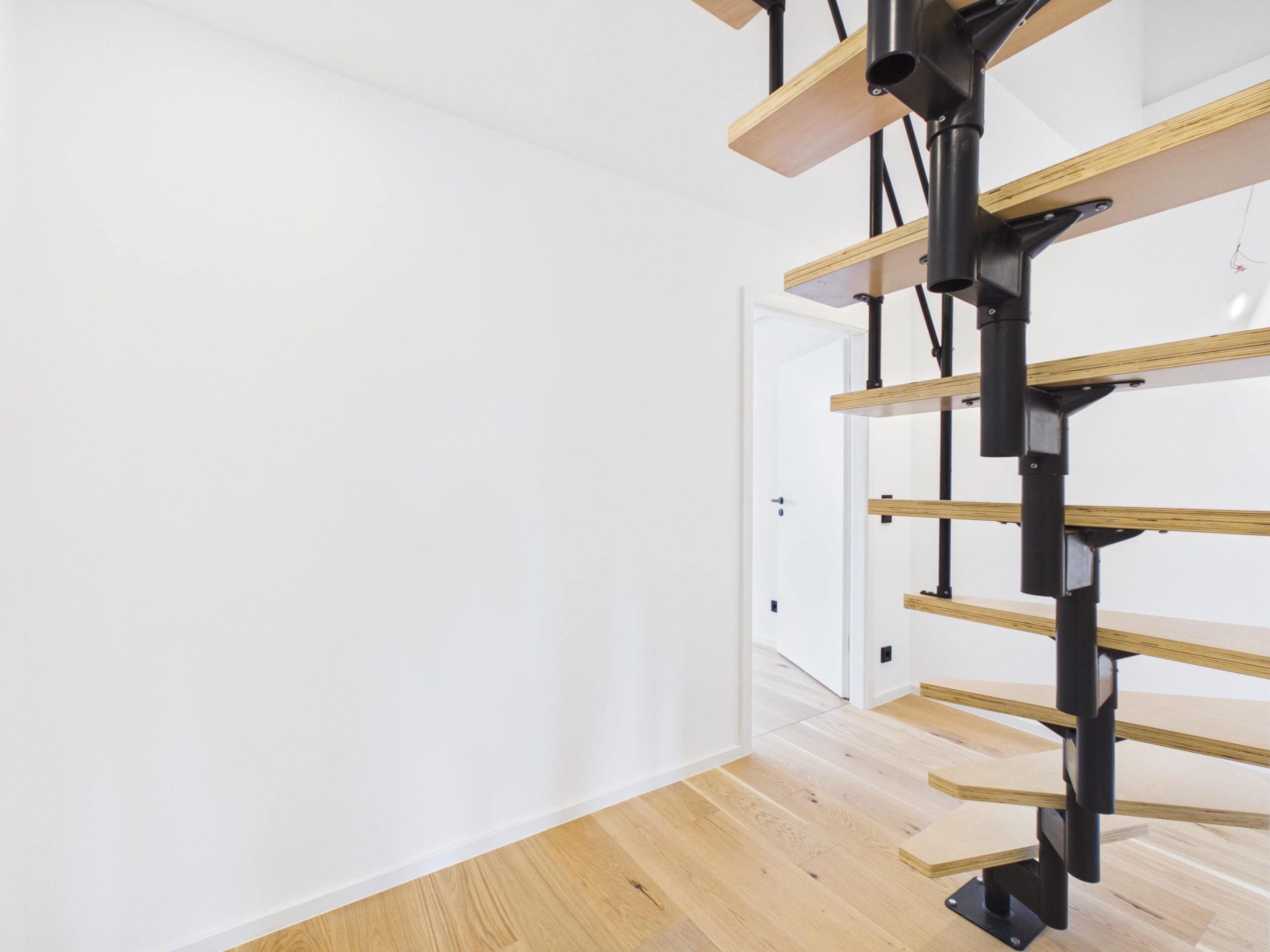 Eine Einbauküche ist bereits vorhanden und fügt sich harmonisch in den Wohnbereich ein. Darüber hinaus stehen ein praktischer Abstellraum, ein Kellerabteil sowie ein Balkon zur Verfügung. Die isolierverglasten Aluminiumfenster und die Zentralheizung sorgen für ein angenehmes Wohnklima. Durch die Maisonette-Aufteilung entsteht ein besonderes Wohngefühl mit klarer Trennung von Wohn- und Schlafbereichen.