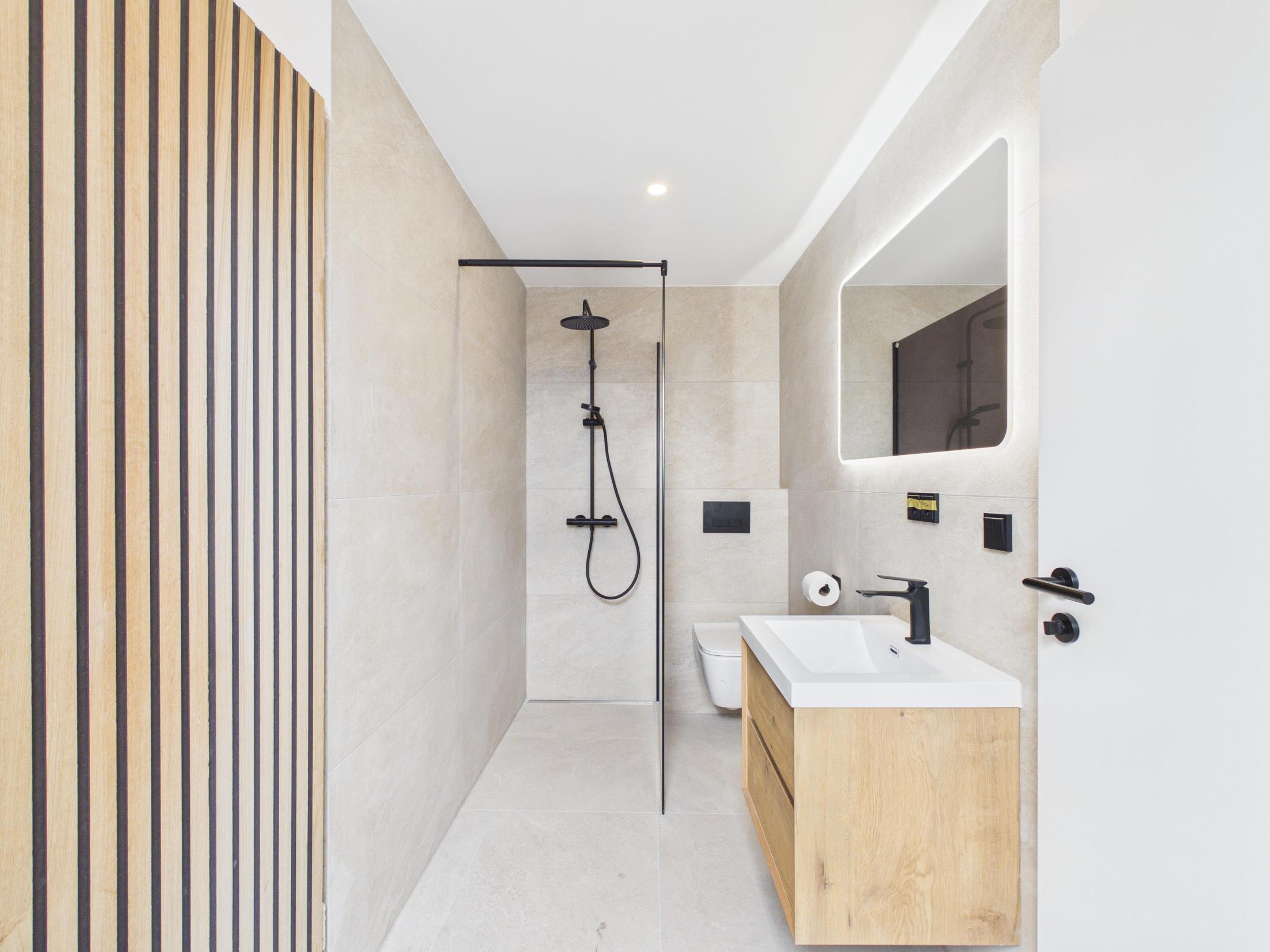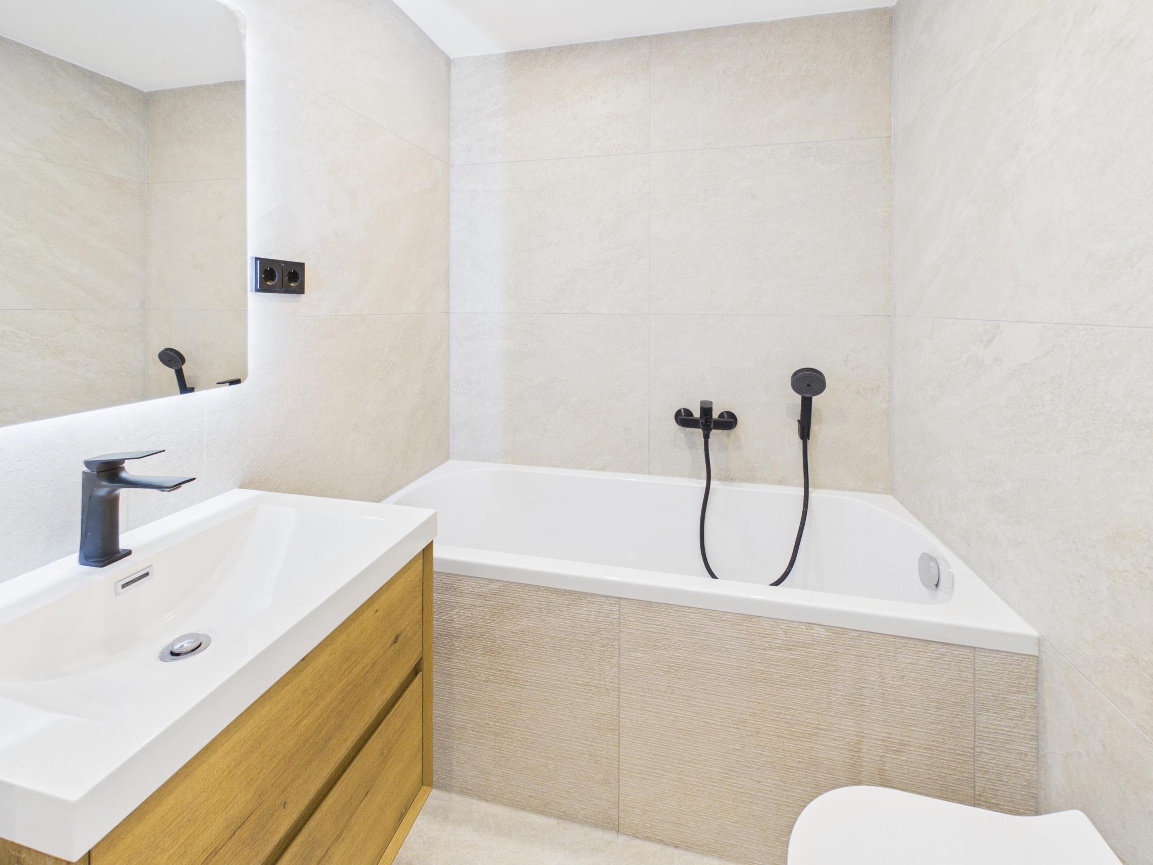 Die Wohnung verfügt über insgesamt vier Schlafzimmer, zwei Badezimmer sowie ein zusätzliches Gäste-WC. Die Badezimmer sind modern gestaltet und bieten sowohl eine Dusche als auch eine Badewanne. Dank Tageslichtbad entsteht eine helle und freundliche Atmosphäre.