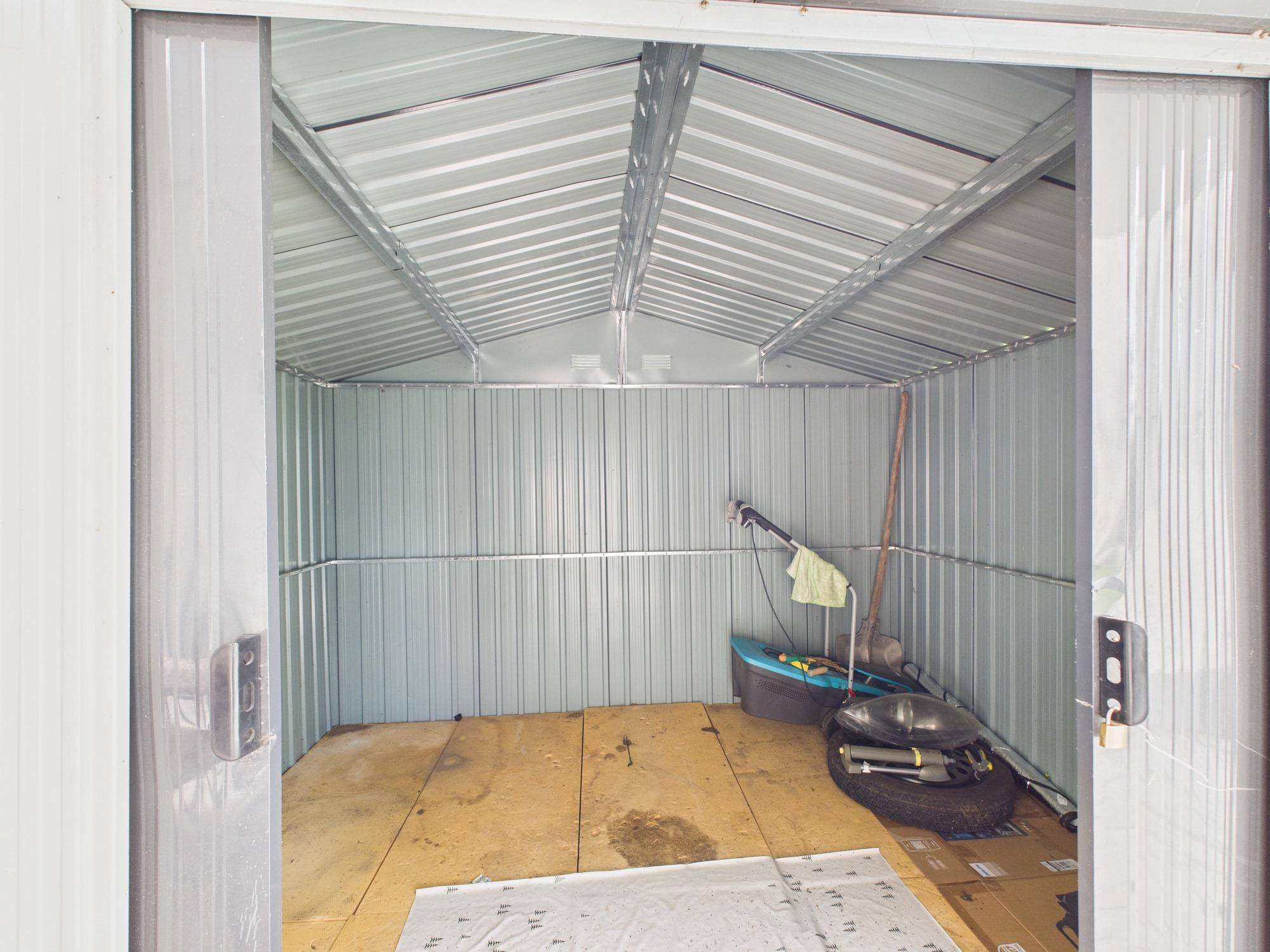 Besonders hervorzuheben ist die Terrasse, die den Wohnbereich ins Freie erweitert und in Kombination mit dem Garten einen schönen Platz für Erholung und gesellige Stunden bietet. Ein Gartenhäuschen ergänzt den Außenbereich und bietet zusätzlichen Stauraum für Geräte, Fahrräder oder Gartenutensilien.