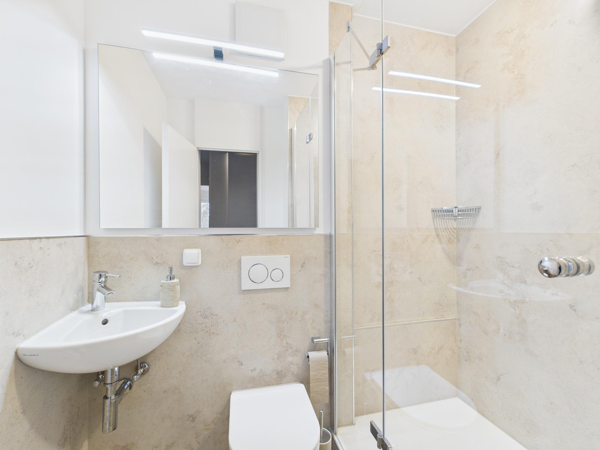 - Gäste-Bad mit Dusche, WC und Waschbecken