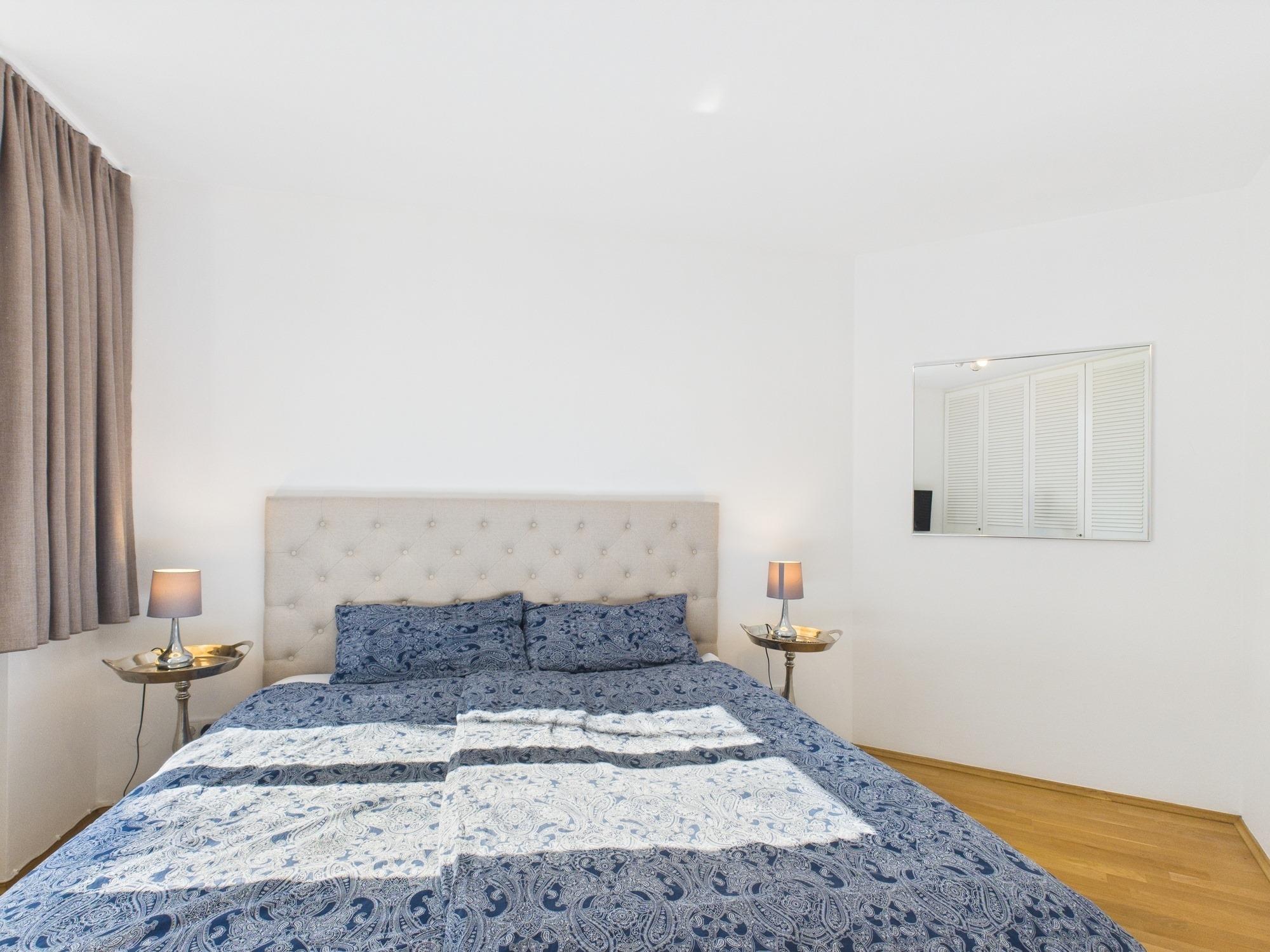 Das Schlafzimmer stellt Ihren persönlichen Rückzugsort dar. Es ist mit einem komfortablen Doppelbett ausgestattet und verfügt über ein weiteres großes Fenster. Der geräumige Kleiderschrank bietet ausreichend Stauraum für Ihre Garderobe. Auch hier gibt es die Möglichkeit das Fernsehprogramm auf einem weiteren Fernseher zu genießen.
